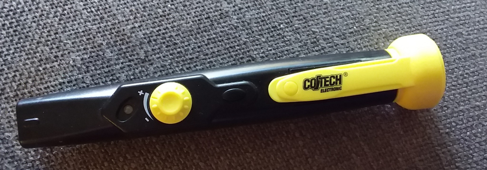 ⬆️⚡⬇️ I manualen står dock att man kan behöva ändra känsligheten beroende på vad man mäter, "minska känsligheten för att indikera högre växelspänning" (och tvärtom, se bild under "Beröringsfri testning av växelspänning"). Men det har väl ingen betydelse i ett hem, spänningen är väl vad den är? (Eller behöver man vara noggrannare just vid en elmätare? Men då piper det även där de gamla skruvhålen är, vilket gör att jag inte har en aning om var strömmen börjar eller slutar s.a.s. -- den är ju överallt, liksom.