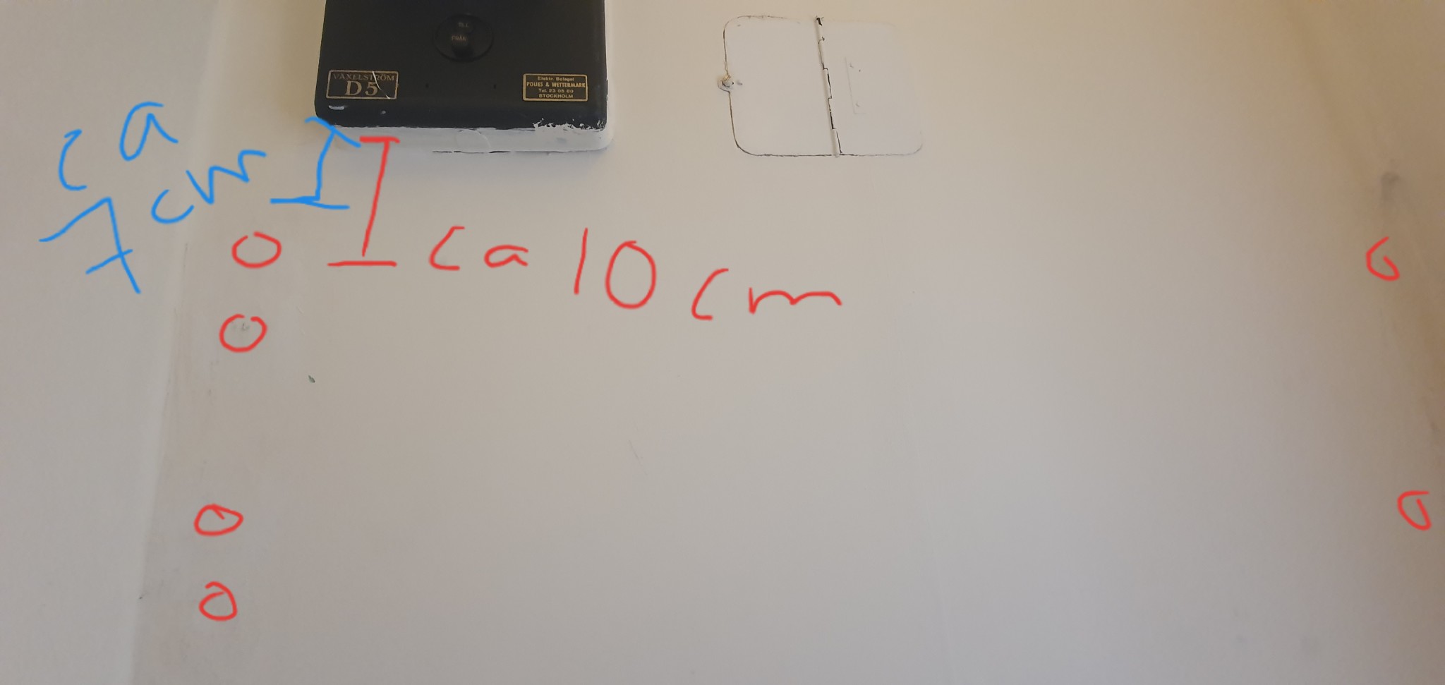 Det översta gamla hålet är 10 cm under elmätaren (se rött i bild). Det nya hålet tänker jag mig ca 7 cm under elmätaren (så lite marginal till gamla hålet, se blått i bild). Kan det funka, tro?