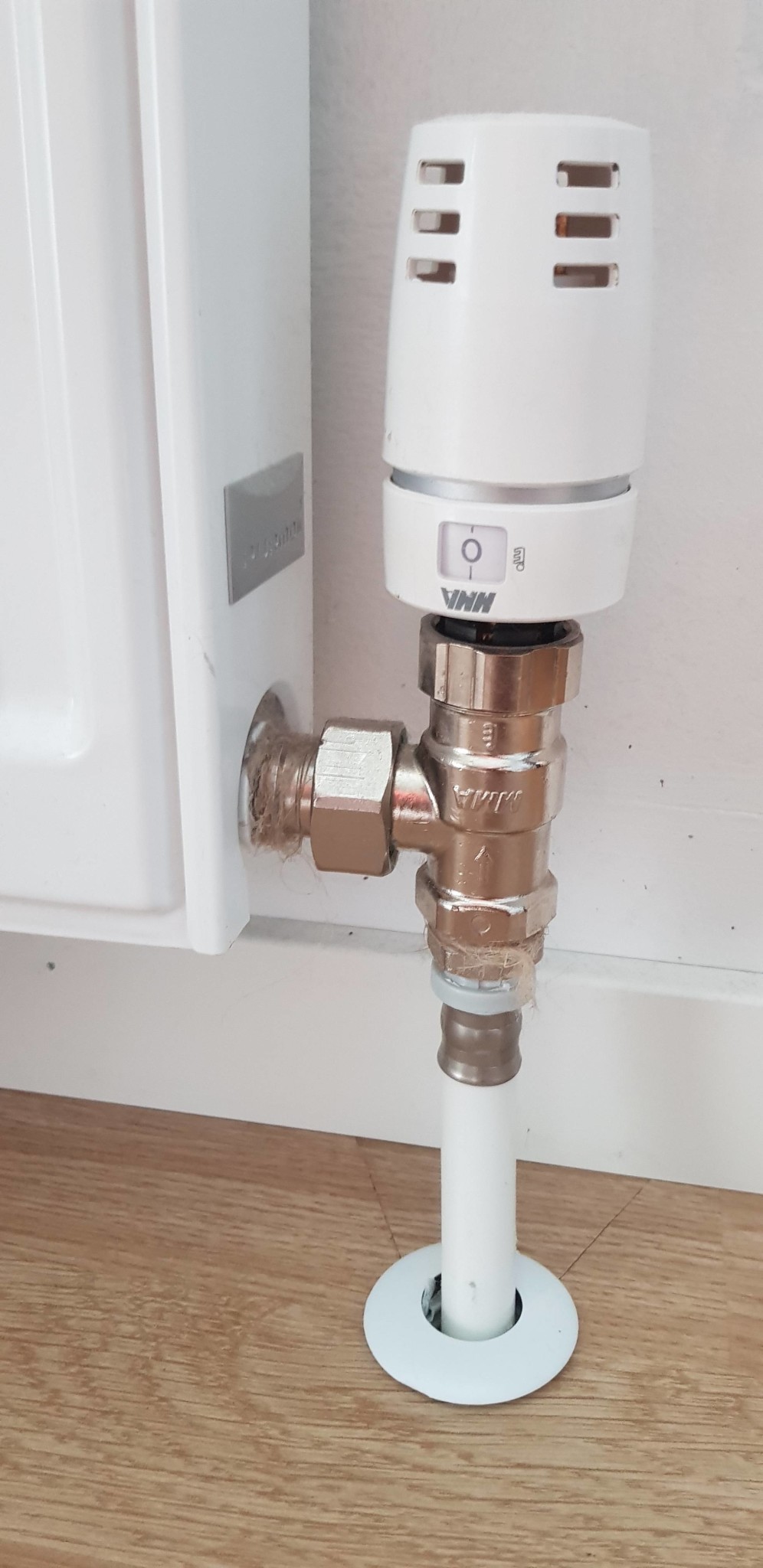 Vid ingången till elementet har jag en termostat (se bild). Om den vrids till noll så borde det innebära att det blir stängt, eller?