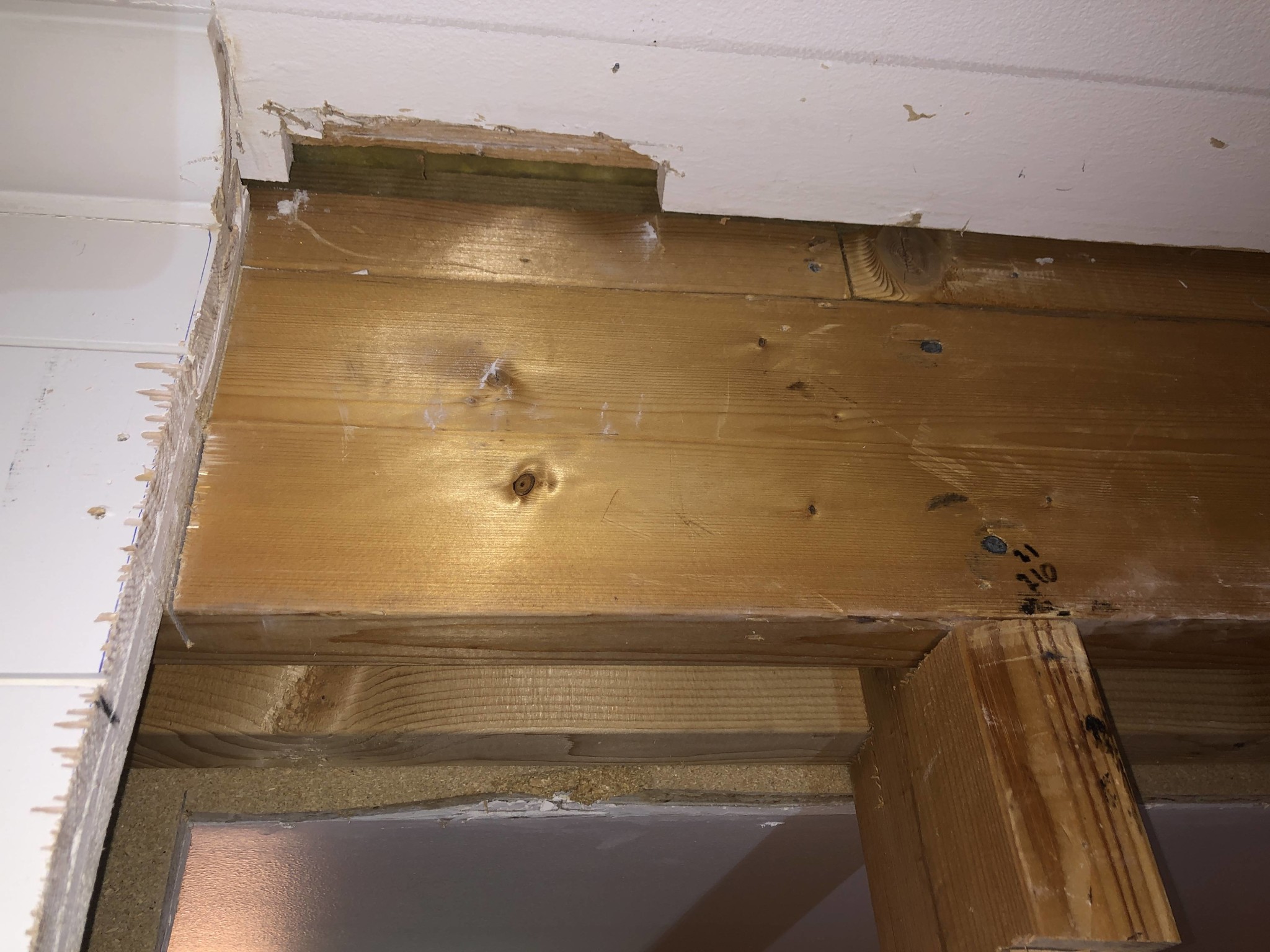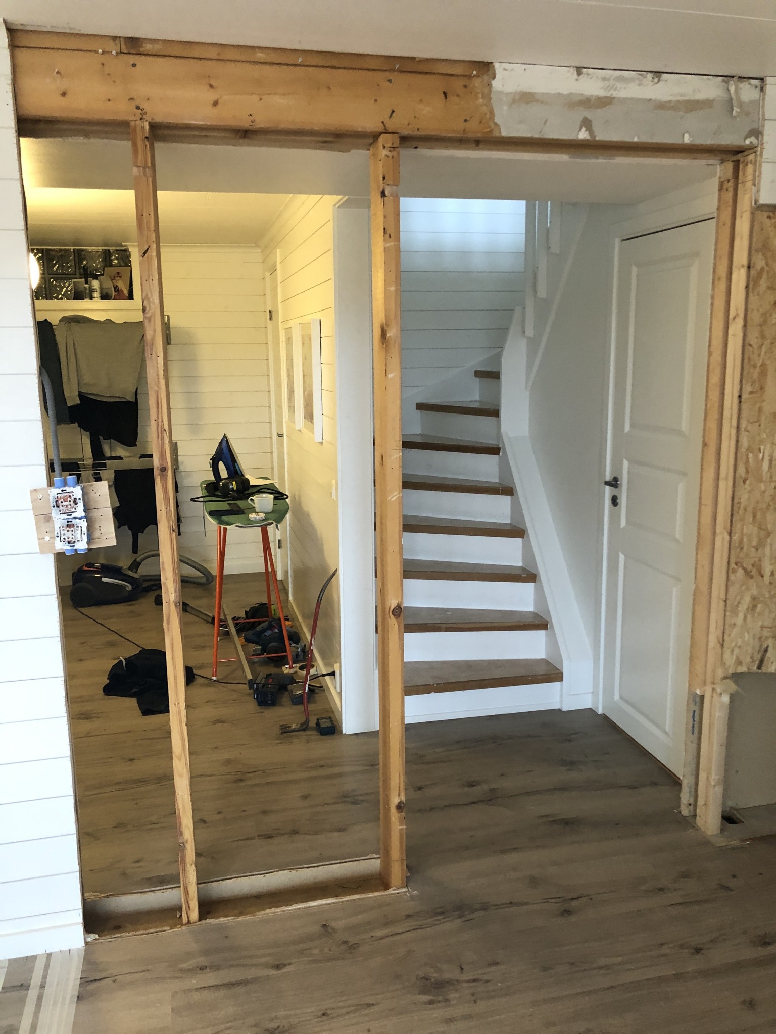 I väntan på att vår snickare ska komma hem och titta på detta projektor om 2 veckor har jag börjat riva ner skivorna på den bärande vägg som vi ska öppna upp. Vi vill skapa oss en uppfattning om hur stor limträbalk vi behöver.