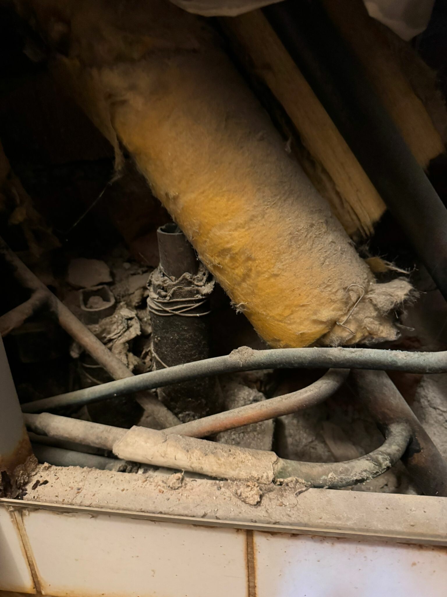 Började med att hantverkarna råkade bila igenom till grannen eftersom inkommande vatten går in till grannens badrum.