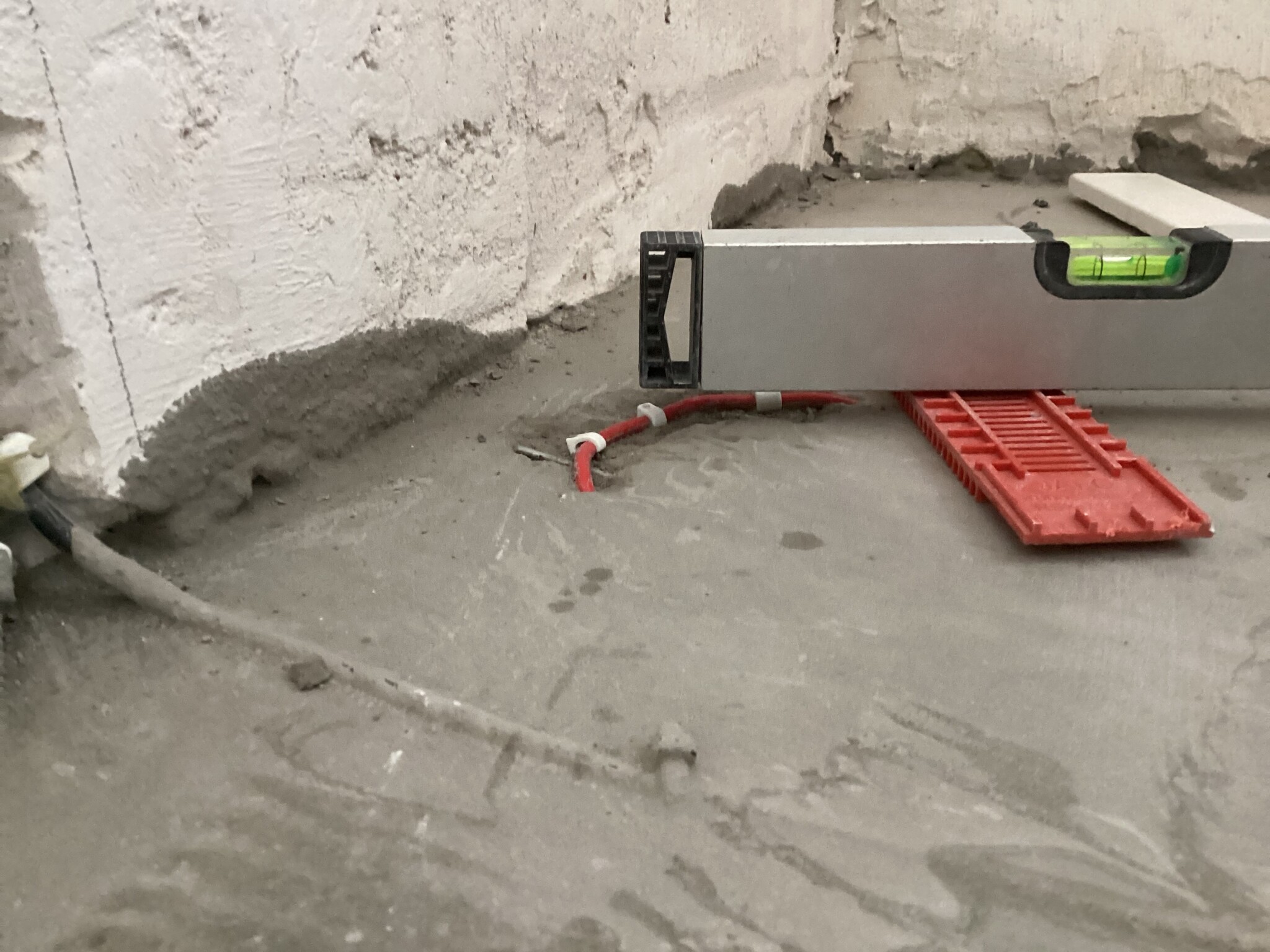 Jag har flytspacklat in golvvärmeslingor, men tyvärr flöt den upp på något ställe..