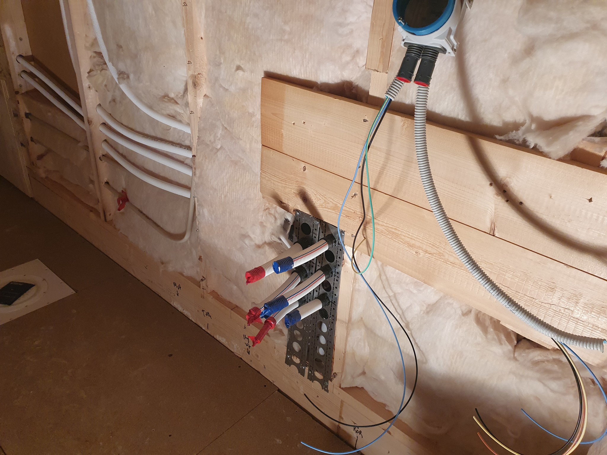 Nu till min fråga. Hur borrar jag smartast hål för rören under handfatet (se bilder). En utmaning att få det bra. Hål på rätt ställe i plyfan och gipset. Läste att reglerna säger att hålet bara får vara 2 mmstörre än röret. Ska som sagt sätta plyfa först och sedan gips.