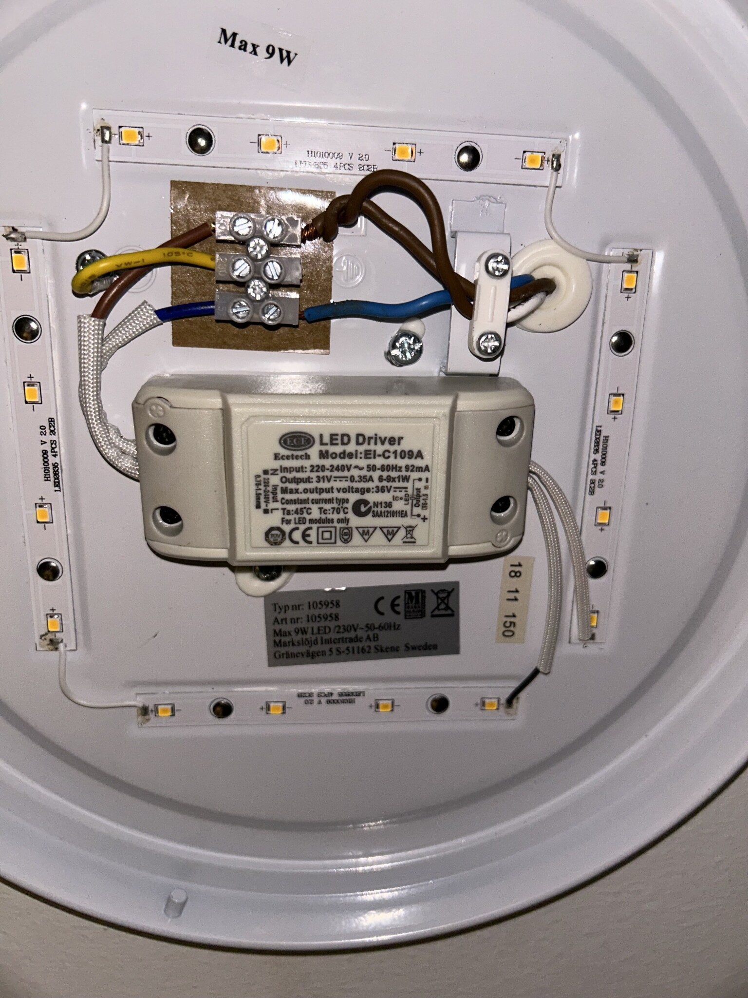 Badrumslampa flimrar, köpte en ny och tänkte byta och ser att de kopplat såhär.
