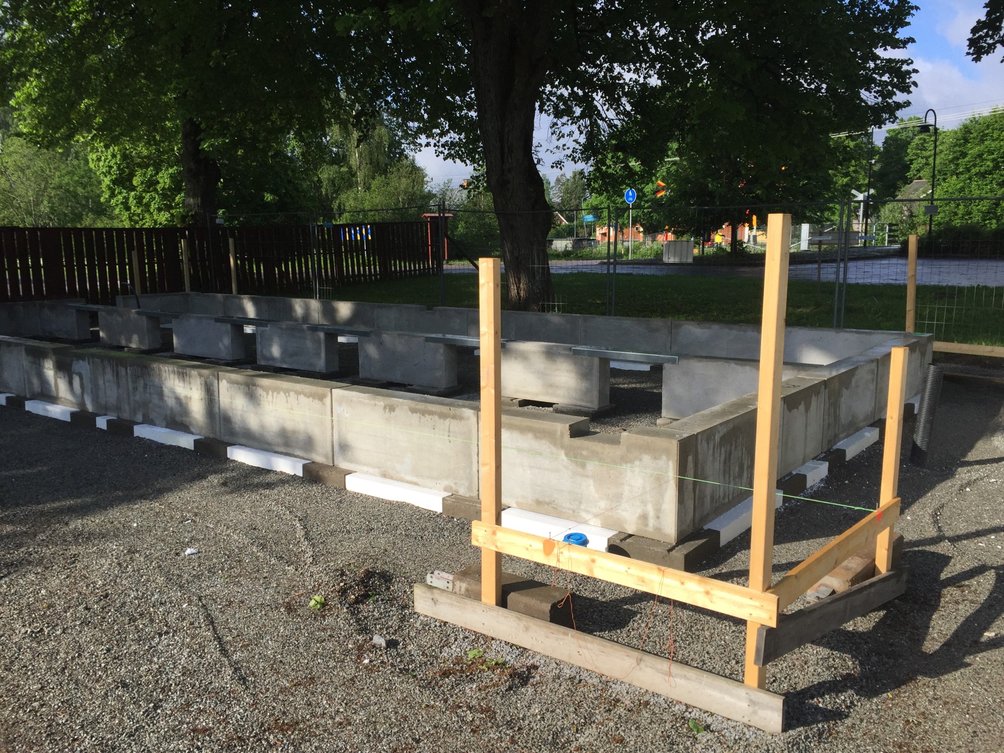 med Tjällden. Mycket smidigt och bra. Plattor-varmisolerade block och plåtar. Blocken pirraden tanten å jag ut efter att vi paddat och lasrat in plattorna. La ut isoleringen på plasten inuti grunden och skruvade fast en syll samt bärlag ovanpå syllen. Upplever konstruktionen bra och isolervärdet med 45x220 som helt ok.