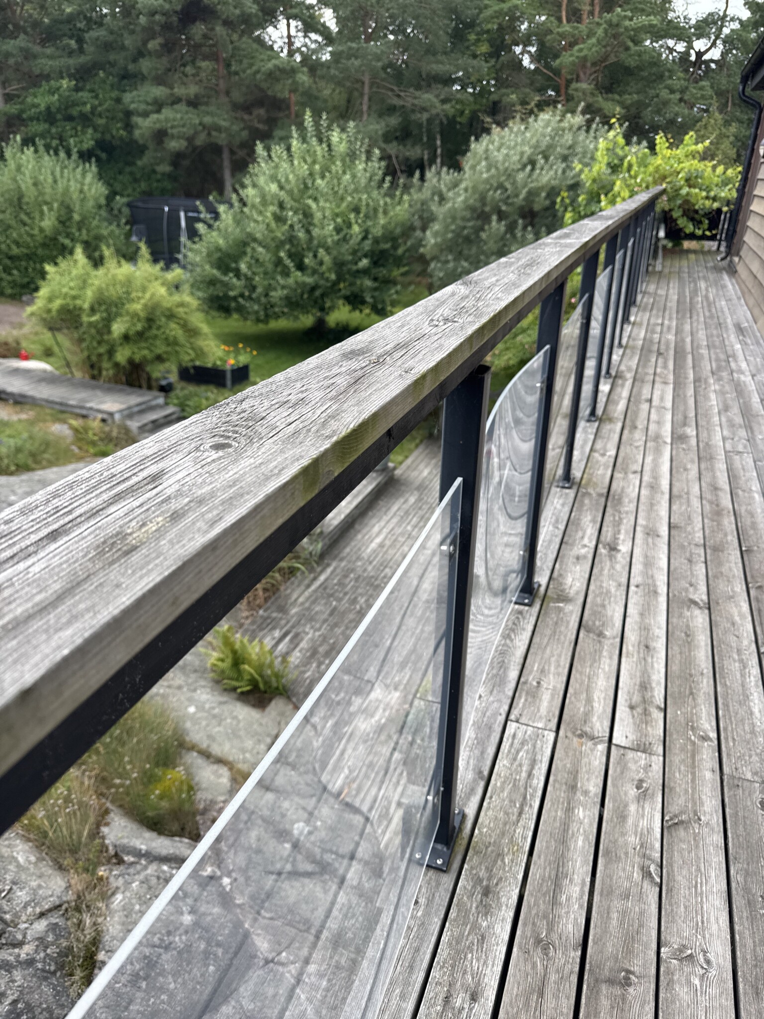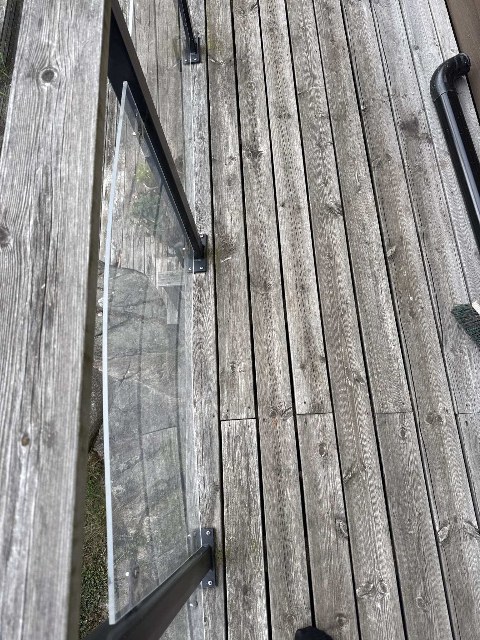 Köpt nytt hus och trodde balkongräcket var i glas, men ser ju att det är en form av plast. På sydsidan där det blir som varmast expanderar det och börjar böja sig då det är fastskruvat.