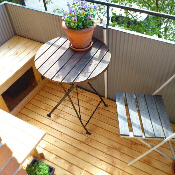 Ska försöka tänka ut något snyggt som inte tar så mycket plats, ganska liten balkong.