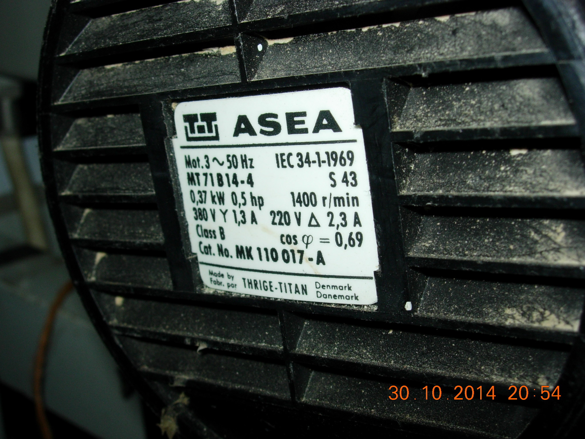 Nuvarande motor o,5 hp 1400 varv 380 volt. Löser ut ef ca några el 5 min obelastad.