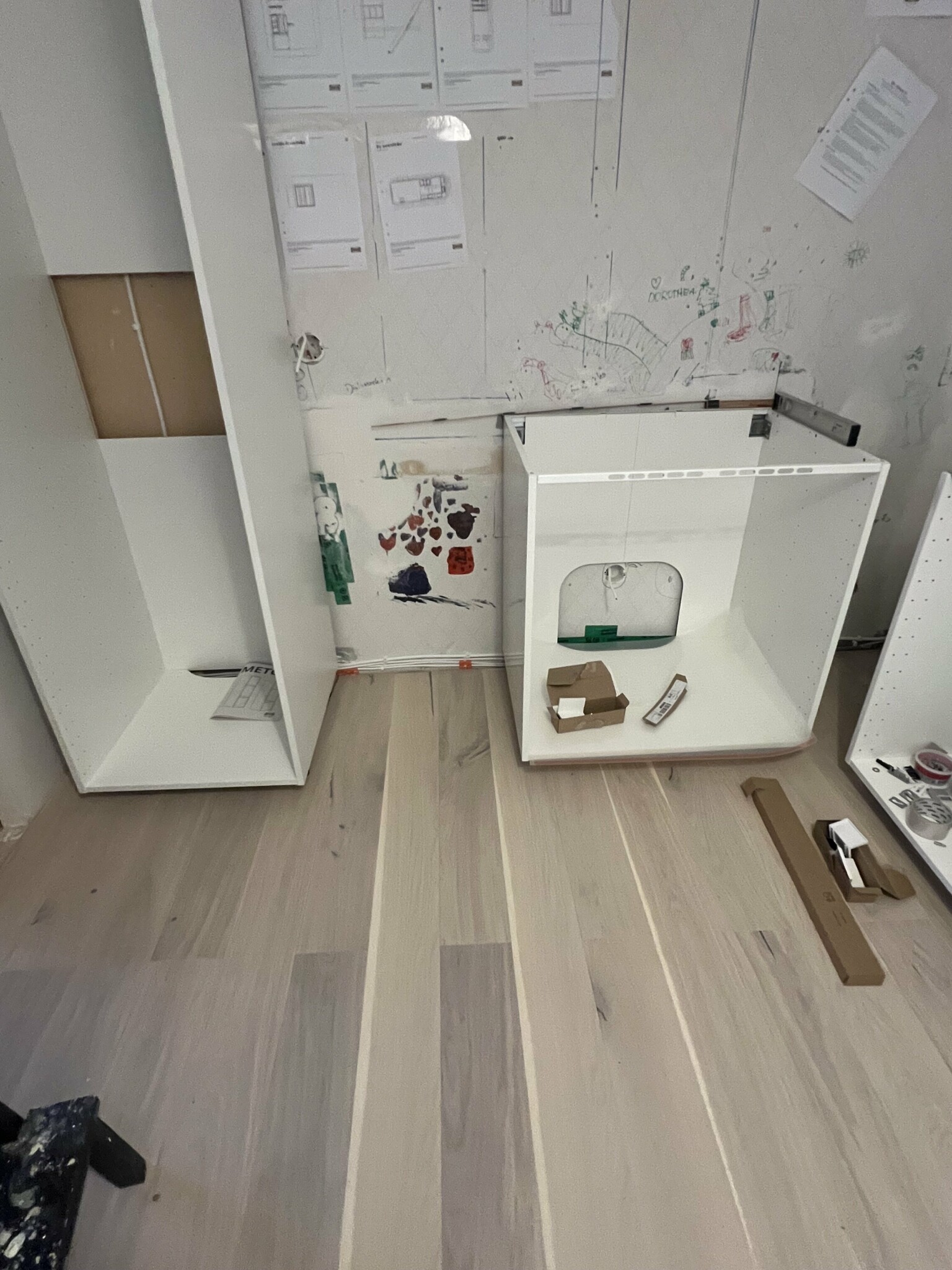 Men sedan hänger bänkskivan i luften båda på framsidan & kortsidan. Får jag plats med en längre typ vinkel i järn där med?
