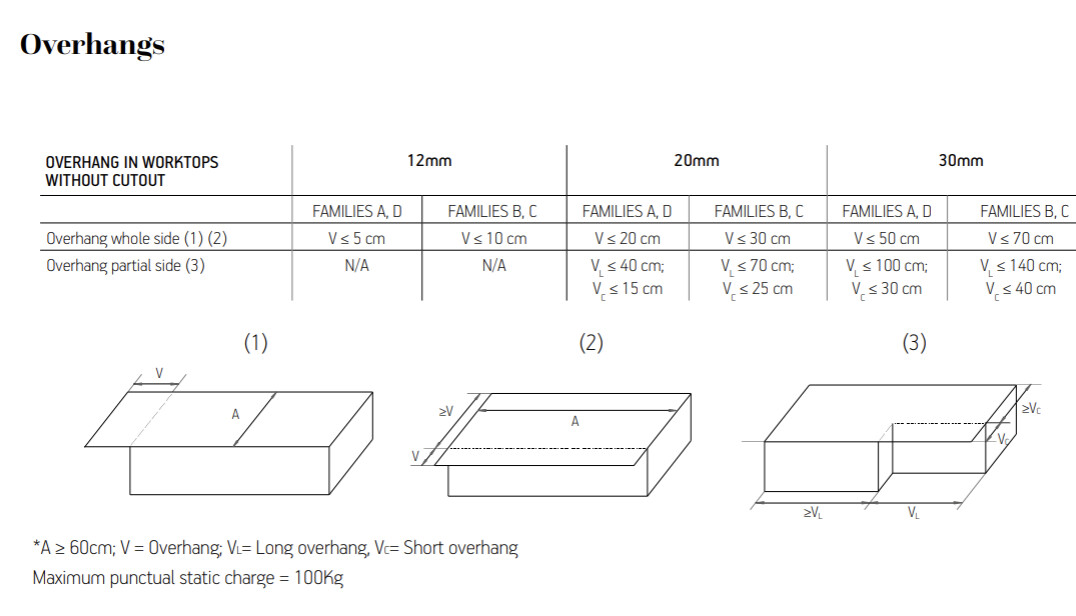 Upp till 70 cm utan stöd går bra på denna lösning förutsatt att Ikea har samma regler som själva tillverkaren. Att tex lägga skenor under är ett bra alternativ oavsett som många gör och märks inte så mycket. Utgår från installationsmanualen på denna typ av skiva har alltså inte tagit någon hänsyn till vad Ikea säger men tänker att eftersom det är samma sten så borde det ju vara.
