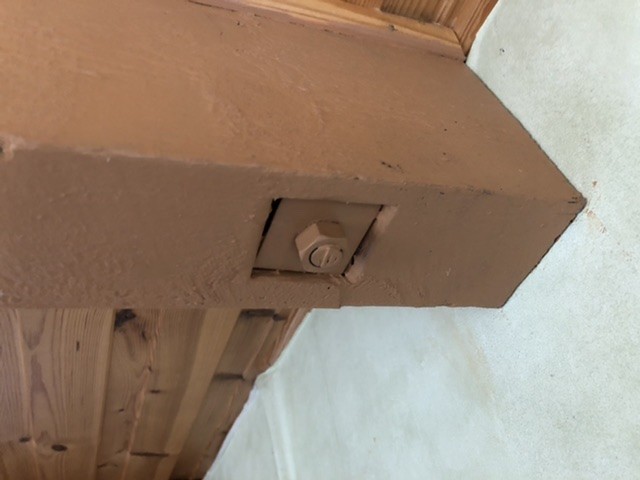 Det skulle också kunna vara så att det är en förstärkning av tidigare konstruktion och att skruvarna är tvärkraftsförbindare men då är det konstigt att takpanelen ligger emellan.