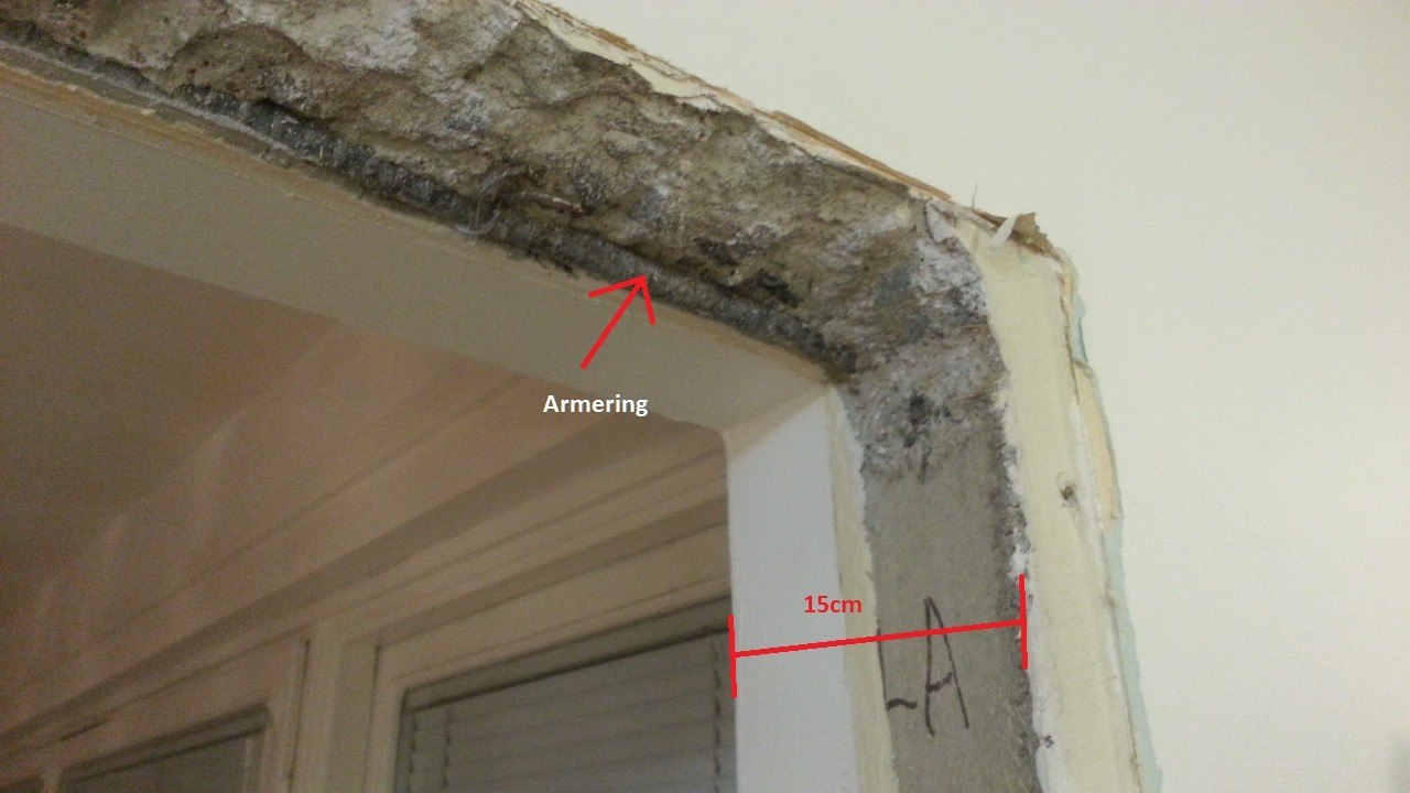 Det är ren betong runt dörrhålen så det sitter ingen balk eller något, väggen kom säkert i ett stycke med dörrhål när det byggdes. Däremot så går det armering ovanför dörrhålen.