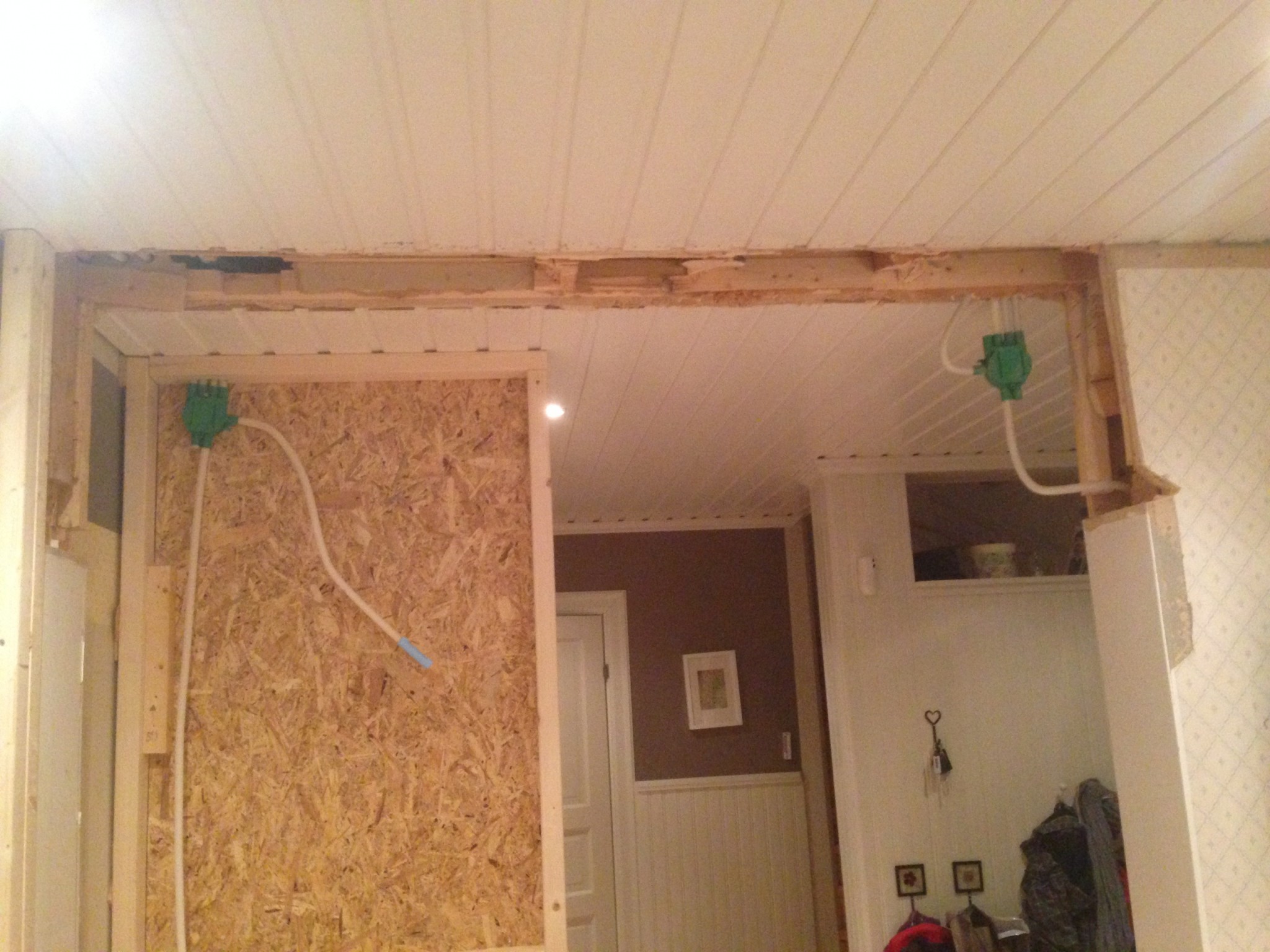 Tror inte det är en hjärtvägg dock eftersom den inte går i husets längdriktning. Det gör däremot nästa vägg jag ska flytta en dörr i men det blir ett senare problem. Och limträbalk ska nog lösa det problemet.