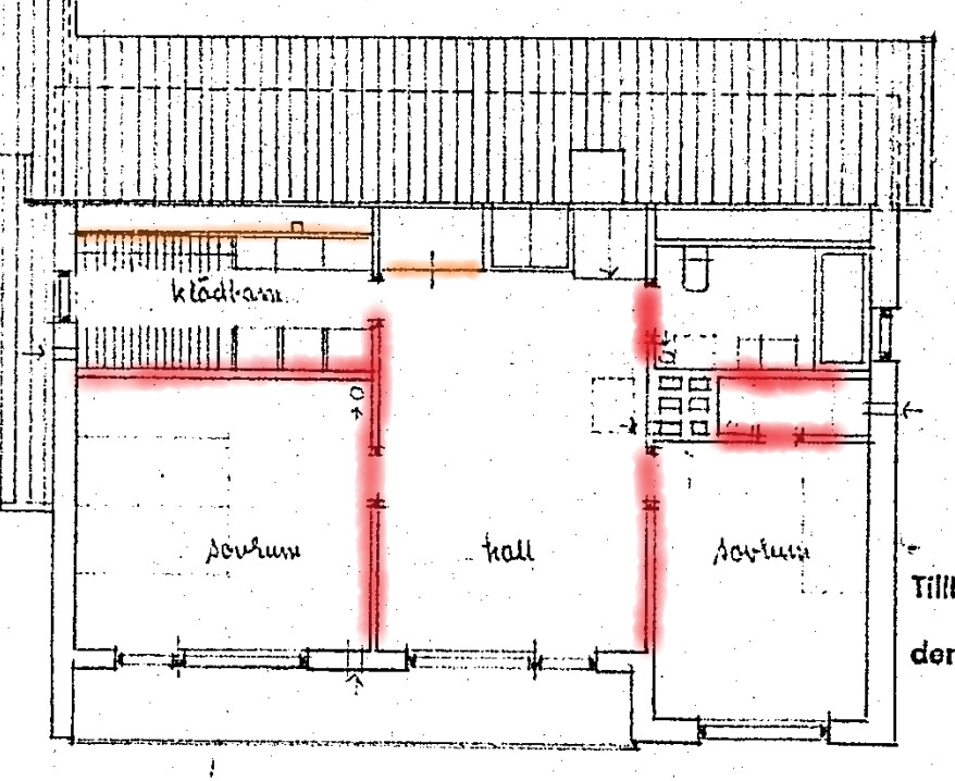 bärande väggar i ett gullringshus byggår 1973