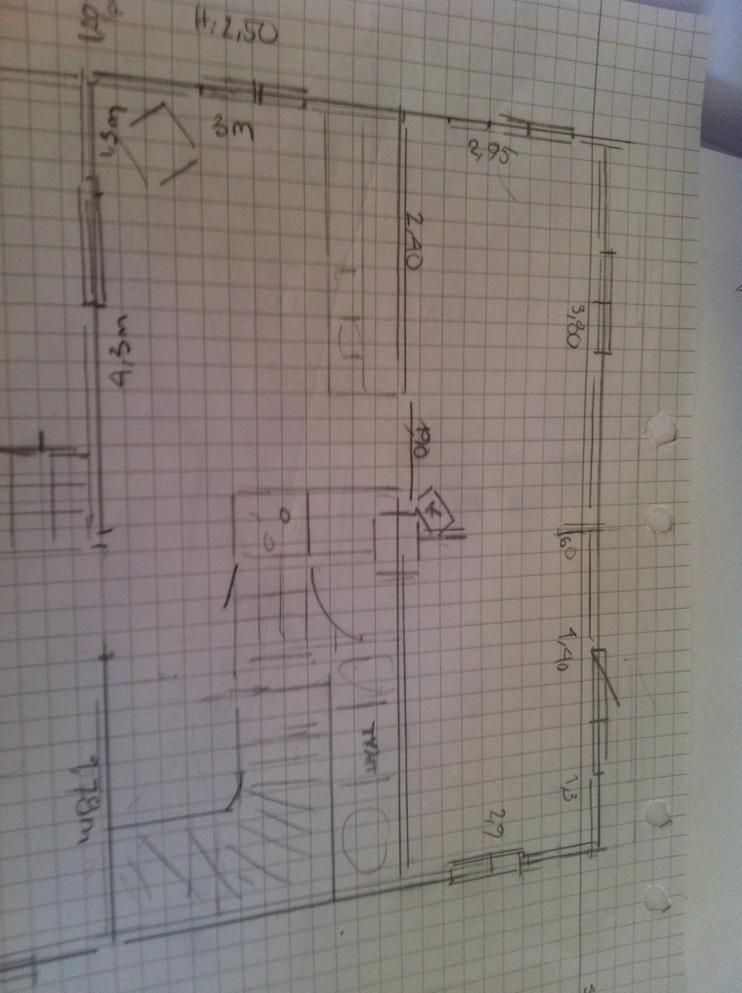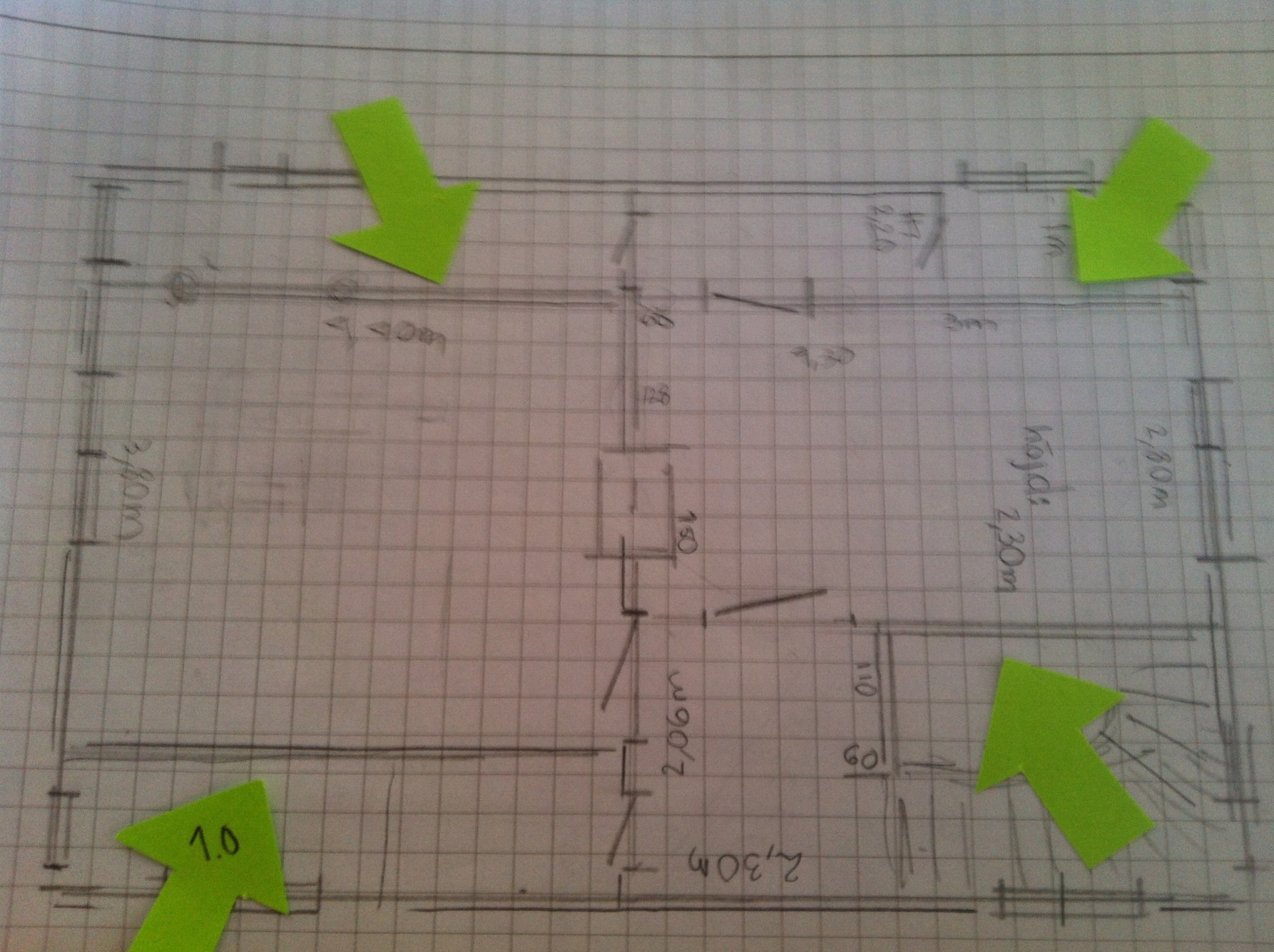 Bild: pilarna visar väggar som jag vill ta bort. Pil 1.0 är en plankvägg. De andra vet jag ej vad som finns i de. Bifogar bilder i skala 1:50. De är hemma ritade så..