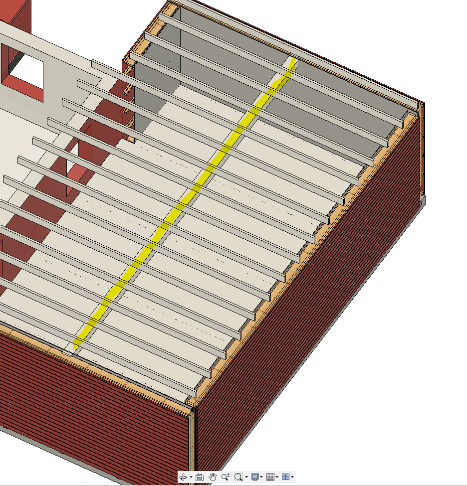 Utöver balken i mitten så kommer bjälklaget vira på dom 3 väggarna som syns i bild samt på stommen till det gamla huset!