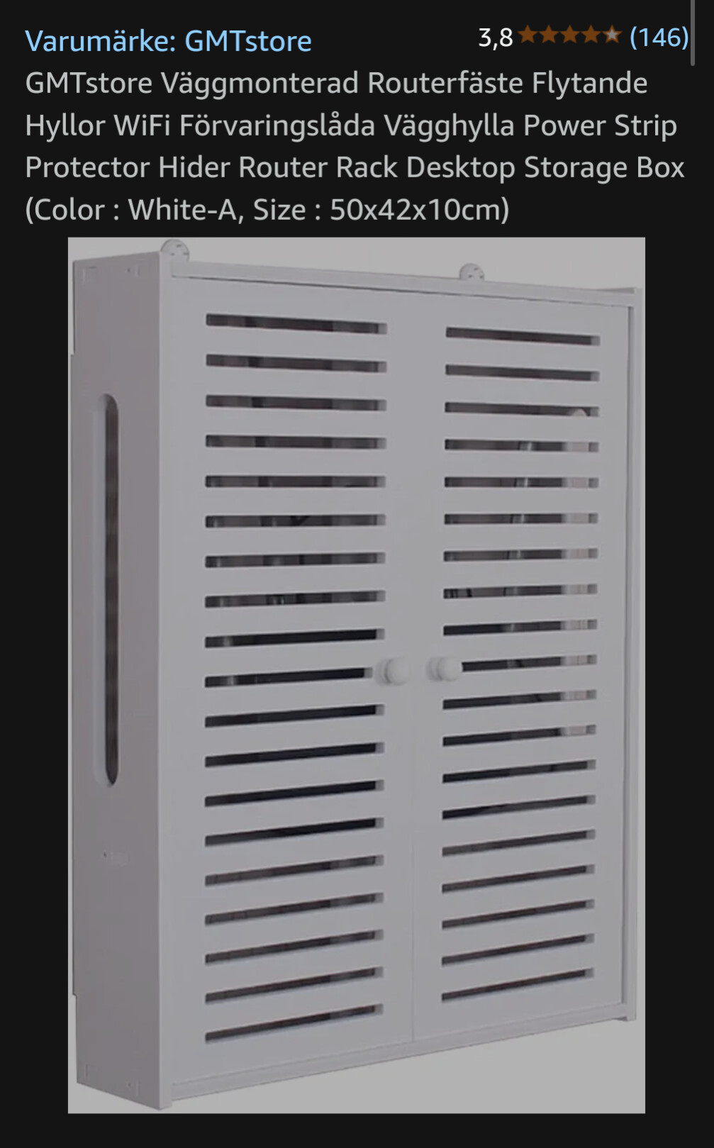 Jag har funderat på någon form av smalt/platt väggskåp (med glasvägg? kanske ser fult ut) för att få undan routern, och isf kanske köra någon kåpa över vägguttaget? Är det någon som har tips på en säker & bra lösning?