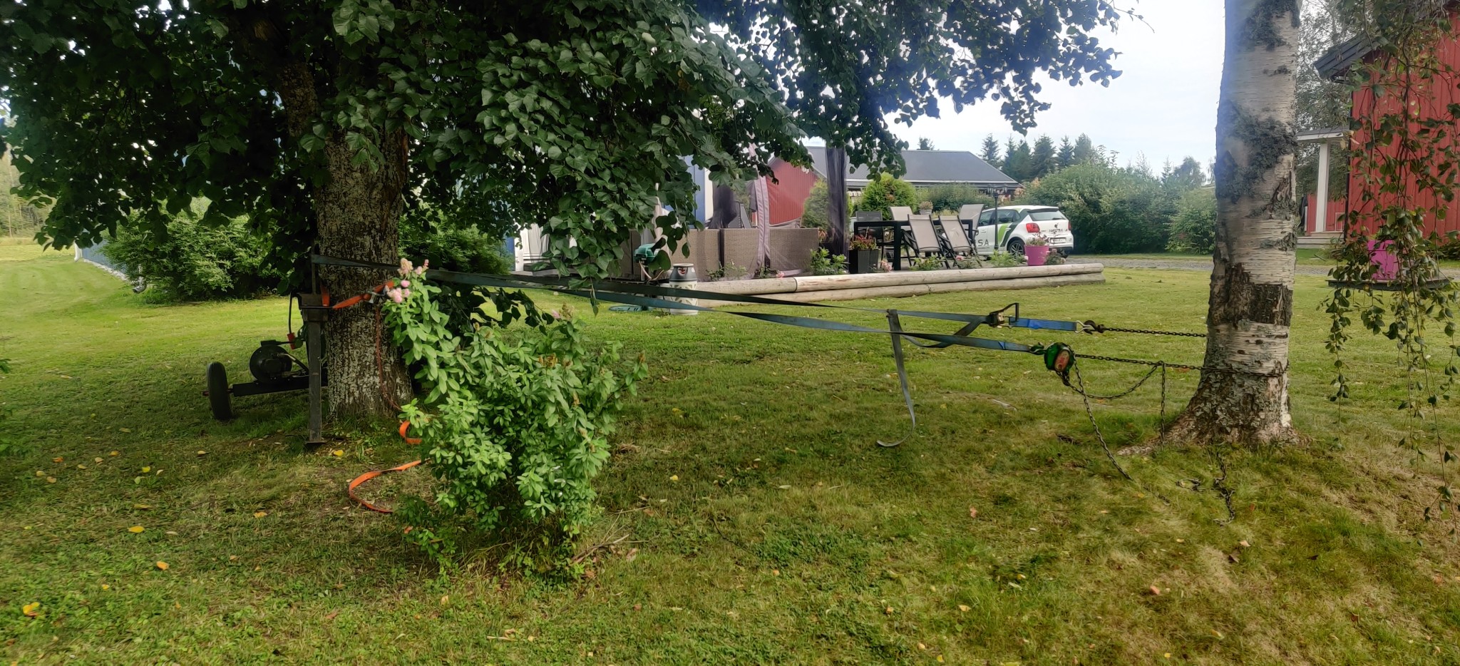 Träd kan självklart ersättas med något annat stadigt som en bil eller nått.