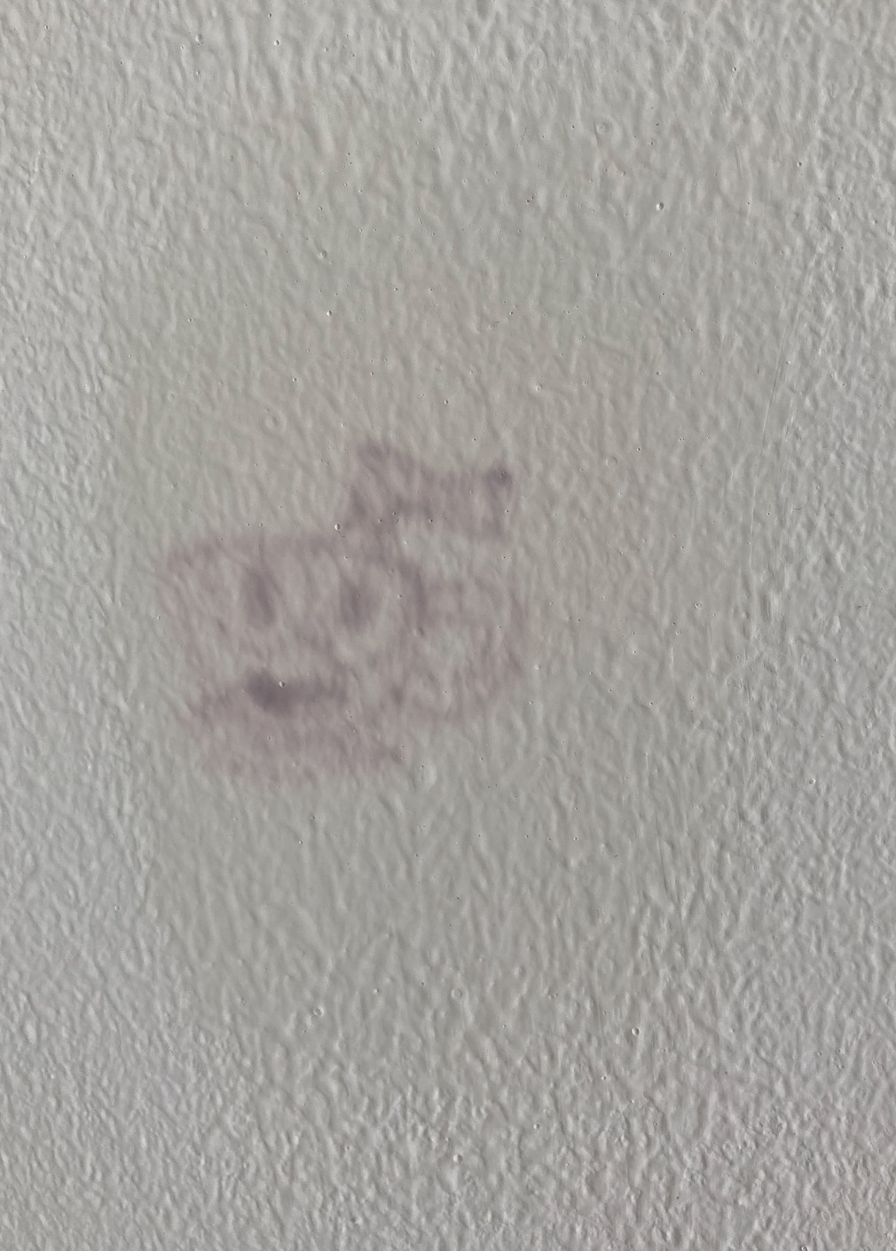 Idag tänkte jag att jag skulle försöka tvätta bort en av målningarna. Tog lite olika rengöringsmedel jag hade här hemma och testade. Det gick åt helvete: