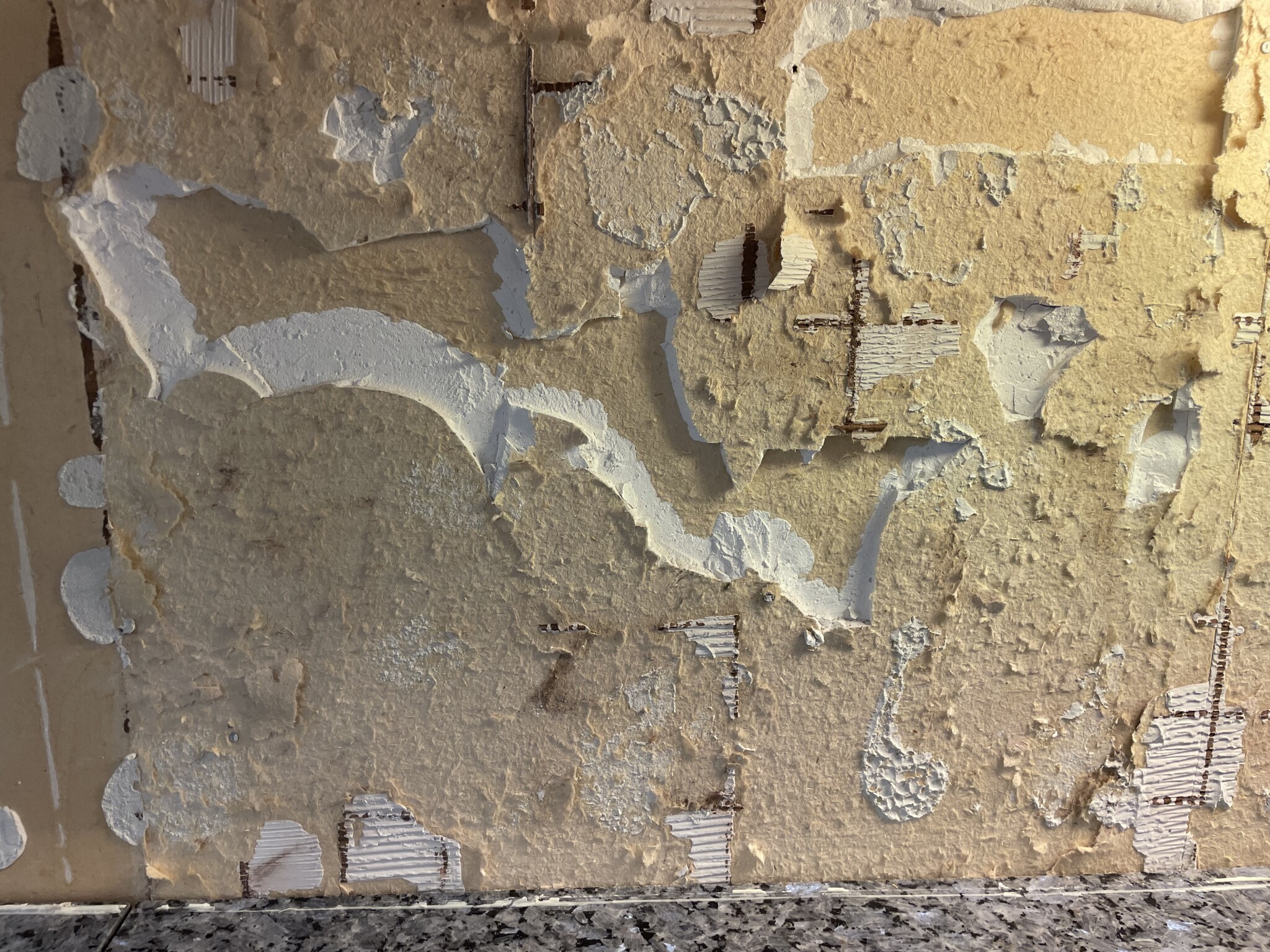 Spontanrenovering i kök...Kaklet är nu borta, med bitvis stora bitar av gipsskivan också. Vi vill få väggen mellan över- och underskåp ca 50 cm slät på enkelt men dock hållbart sätt, som gärna inte bygger för mycket djup. Vad göra? Skära bort dåliga partier gips och skruvs dit nya partier? Skruva upp renoveringgips direkt över hela? Måste då de hålen spacklas igen först? Med vad i så fall? Eller bör man limma upp annan skiva typ våtrumsskiva?