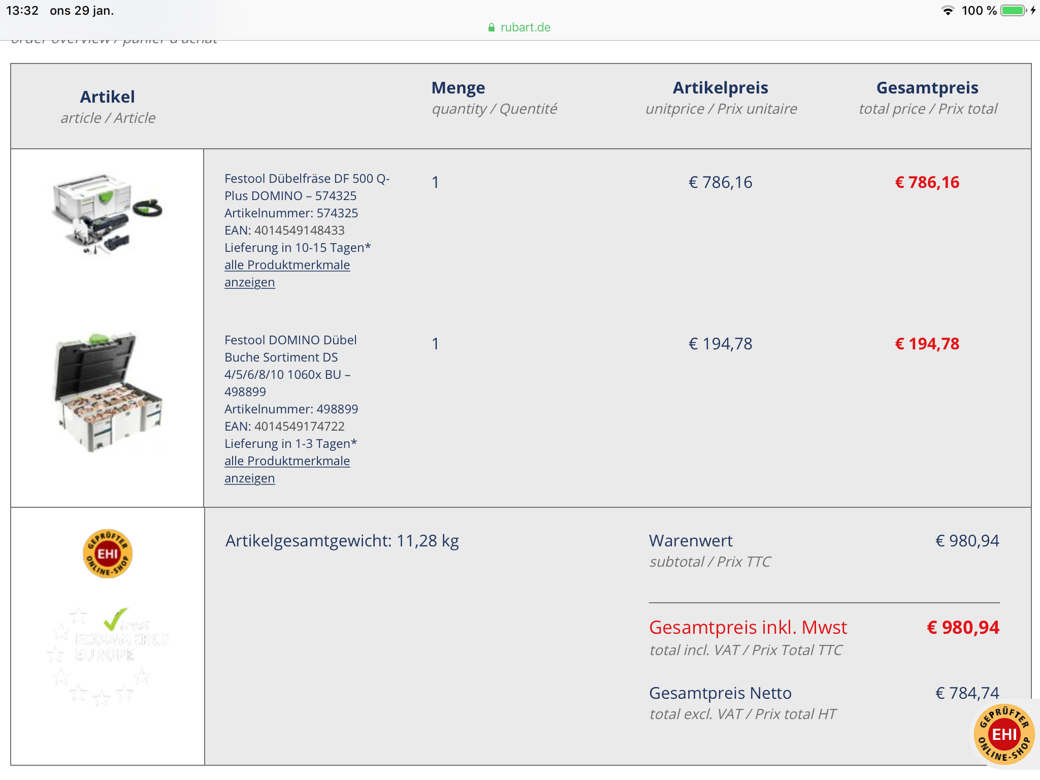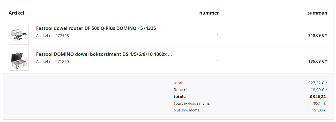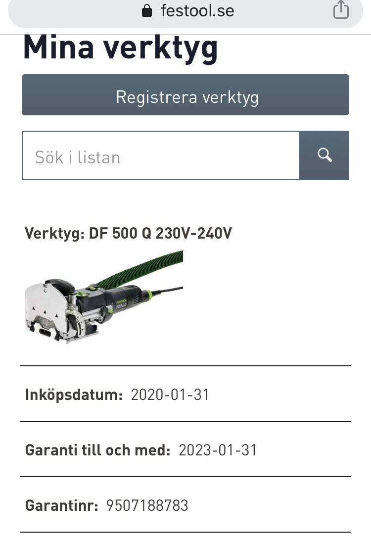Så fungerade det när jag handlade från Tyskland, infon dök upp direkt på Festools hemsida.L Lovan83 skrev: