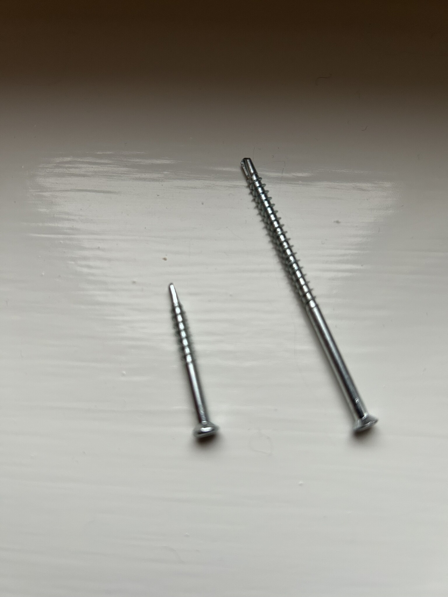Det här är min favoritskruv när det krävs precision med lister och annat. Ca 3mm smal. Borrspets. Liten skalle. Och torx. Och den fanns i olika längder. En oerhört praktisk skruv. Dessutom såldes den i lösvikt.