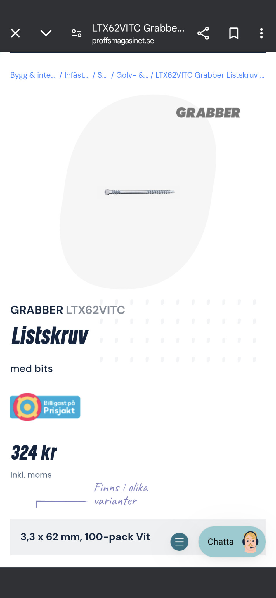 Den listsktuv jag hittar är ofta för grov och har för stor skalle. Ofta är de förpackade i små påsar och styckepriset på skruven blir 10 spänn styck.
