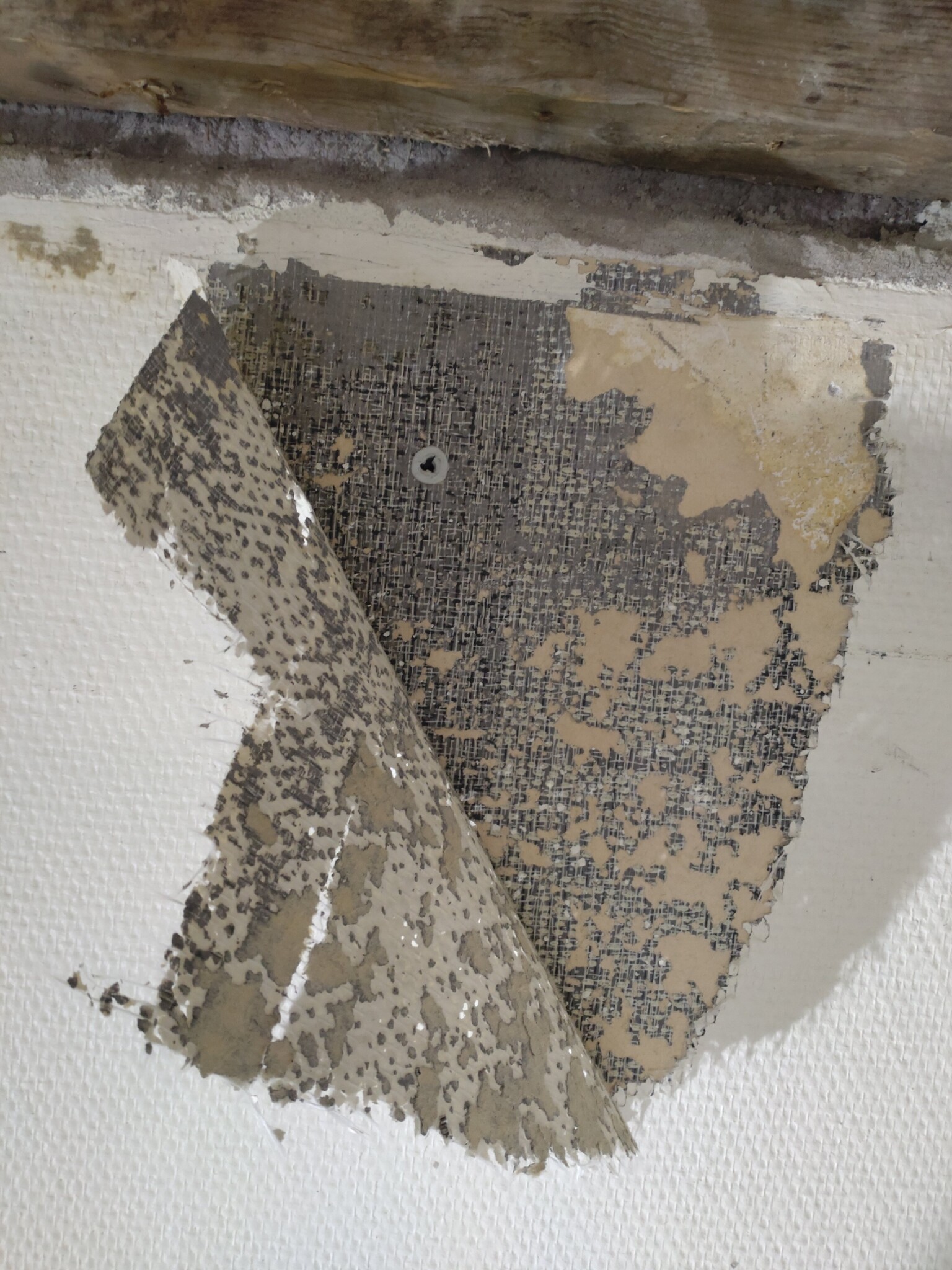 Renoverar hallen och skall bredspackla inför målning. Nu sitter där målad glasfiberväv. Den sitter bra med endast några små områden med bom, vilka jag kan skära bort. Å andra sidan verkar jag kunna dra av den i stora sjok om jag tar i lite, och då blottas tapeten under (se bilden). Skulle ni i detta fall försöka slita ner väven, eller spackla på väven?