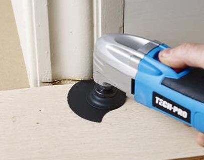 - Ta en multisåg och stöd den mot en höjd som tröskeln har och såga ur det nedersta av dörrfodret.