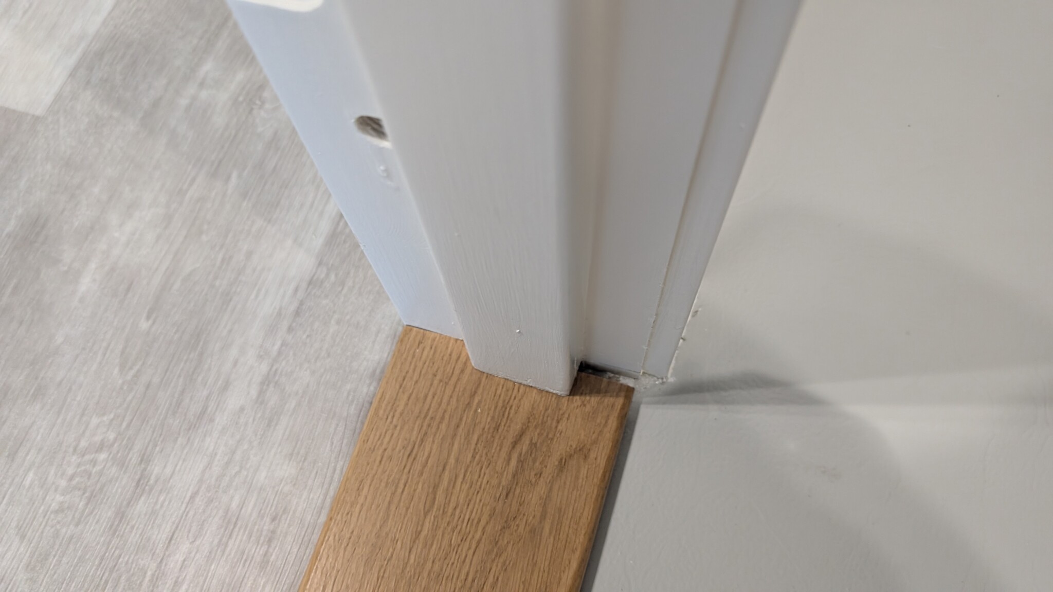 Dock matchar dom inte perfekt. Några detaljer kan jag såga till för att få in dom i dörröppningen, men på ena sidan så räcker inte tröskeln hela vägen utan det saknas någon cm vilket stör mig enormt (bifogat bild på det. Ena bilden visar att ena sidan är dörrkarmen bredare och då räcker inte tröskeln till)
