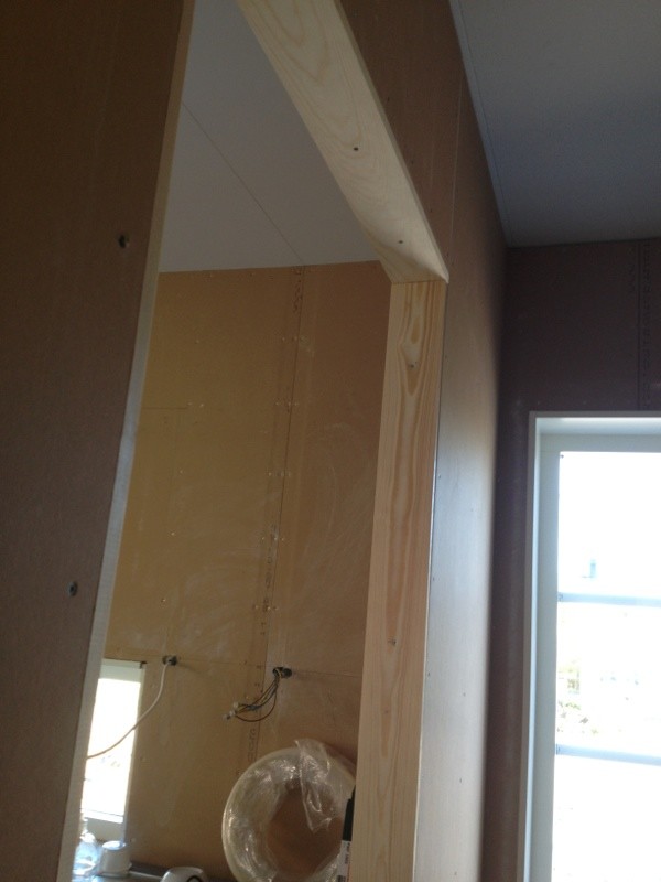 Jag renoverar köket i fritidshuset och har då tagit upp ett hål in mot vardagsrummet. Detta hål skulle få en bänkskiva samt foder runt om.