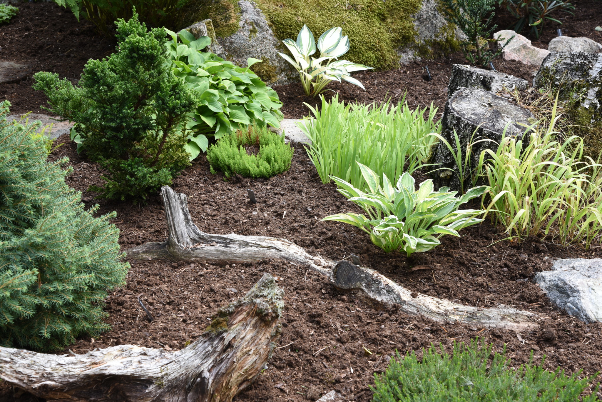 Vill du istället ha vintergrönt finns det barrväxter i miniatyrform, s.k. häxkvastar. Där kunde man med fördel välja tre olika sorter, det viktiga är att de är extremt långsamväxande som häxkvastar är, då blir det täta små juveler som behåller formen och skapar harmoni i planteringen.