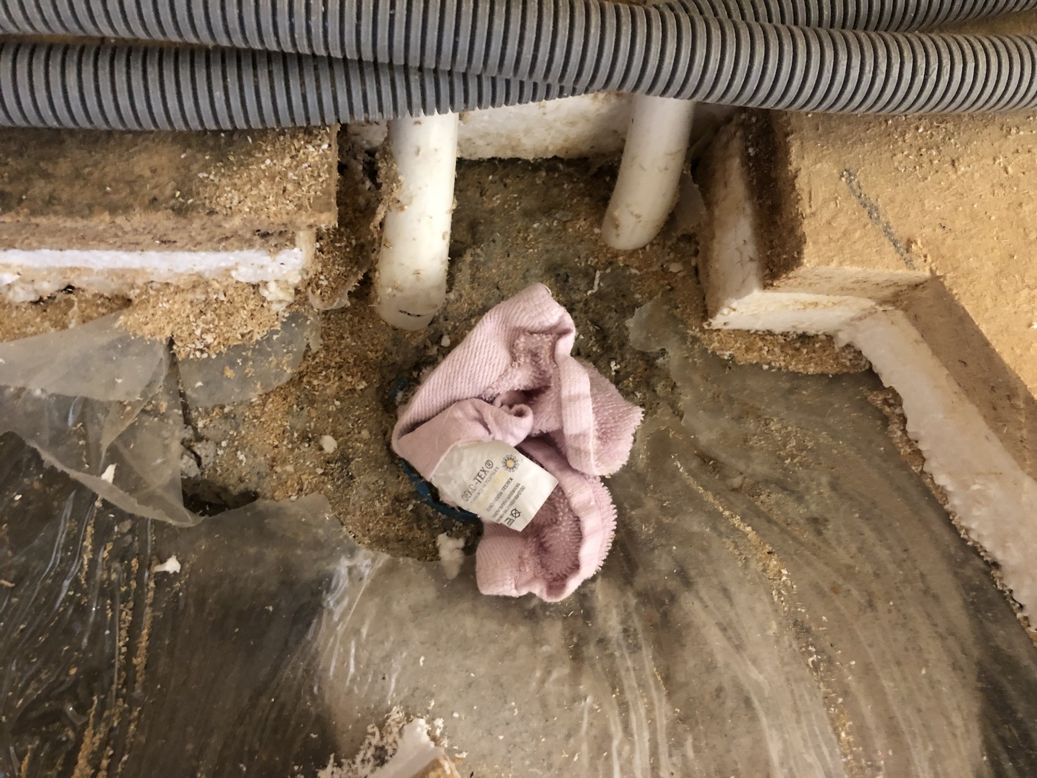 Det som känns osäkert är även att vettenledningarna går precis intill där avloppet går ner i plattan vilket gör det extra känsligt att bila upp just där. Jag gissar att jag behöver komma ner ca 15-20 cm ner i plattan för att kunna koppla på 75 mm-röret.