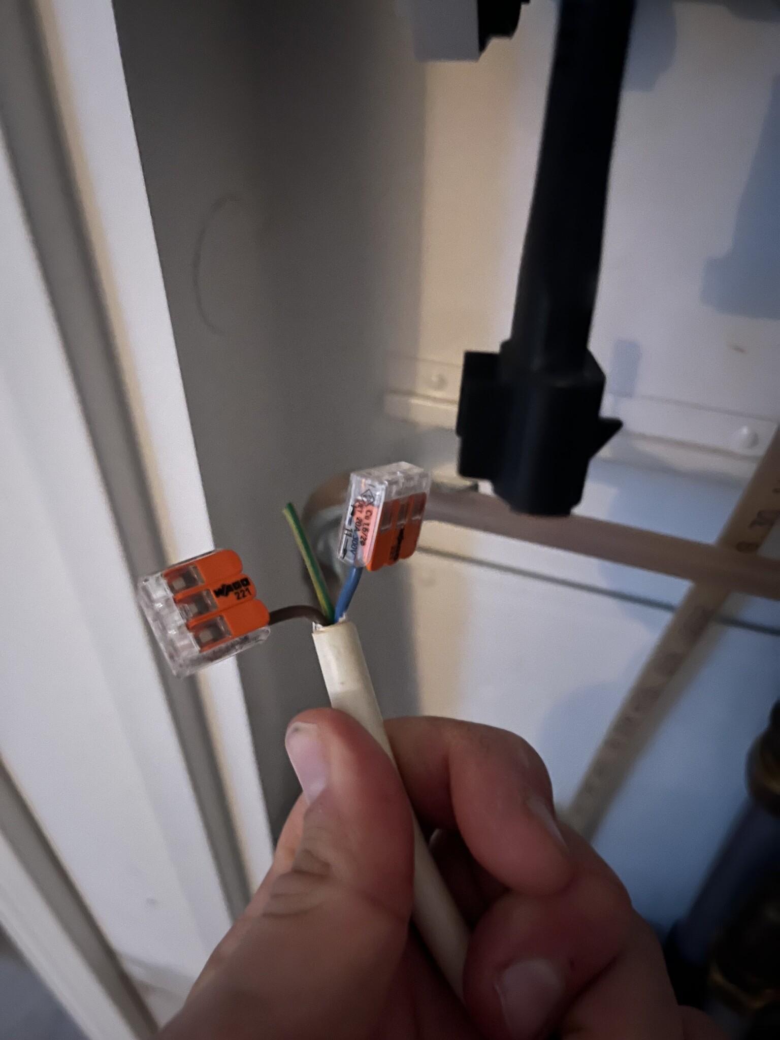 Nu när minusgraderna kommit märkte jag att elementen på övervåningen inte fungerade. Vid felsökning hittade jag en cirkulationspump i huset som inte var inkopplad, det finns ingen hon-kontakt installerad.