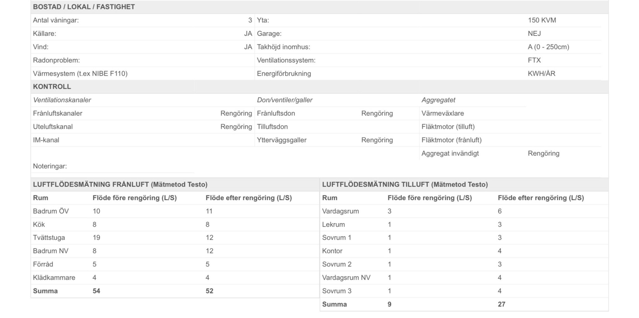 Normalt har man ett flöde om 0,35l/s, m2 och tilluft och frånluft i balans eller med ett litet undertryck (mer frånluft än tilluft)