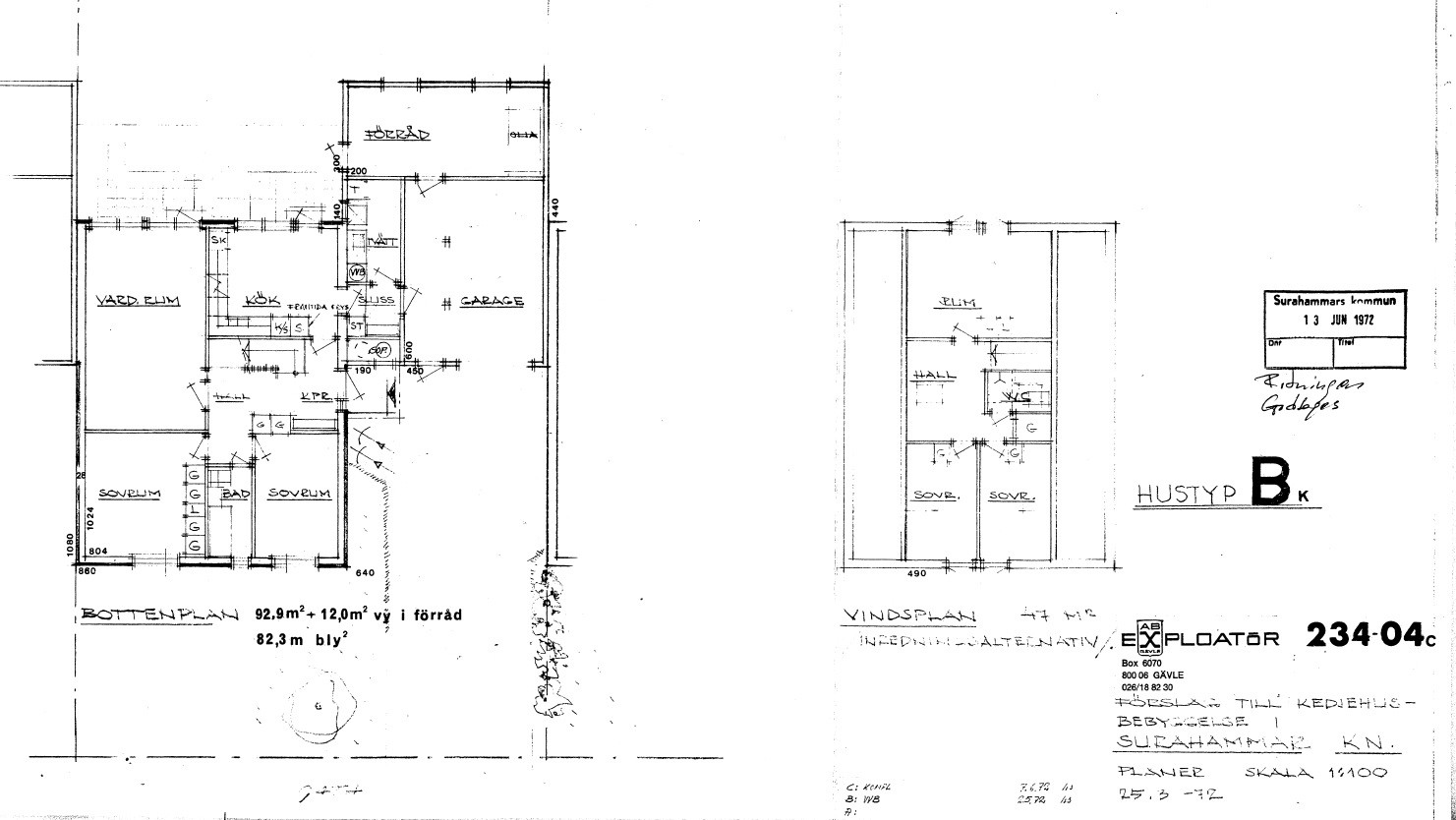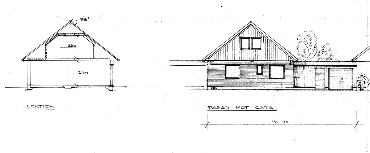 Huset är ett 1½ plan från -73, bifogar ritningar på kåken och väggen i sig.