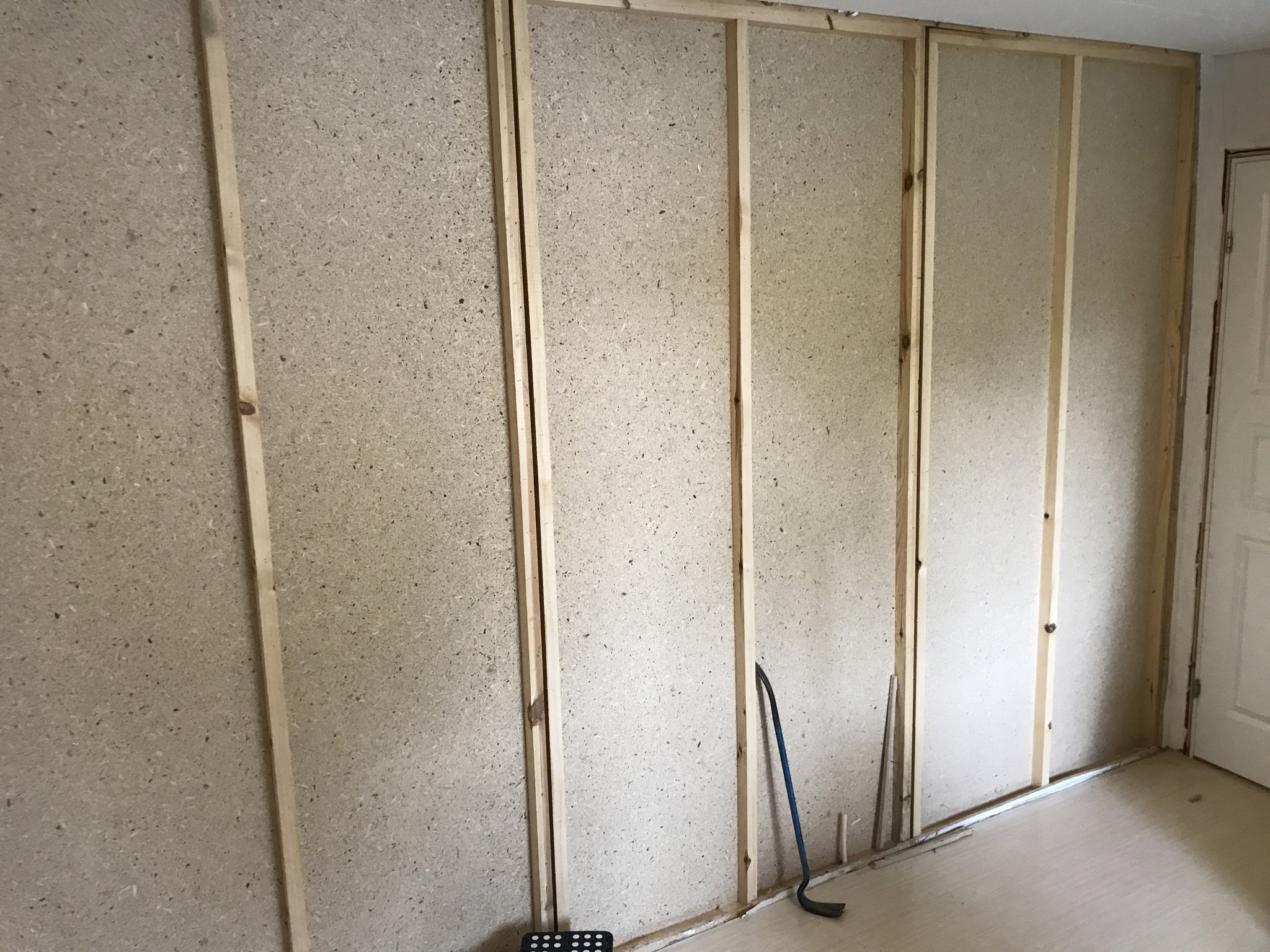 Vi har tagit bort spånskivorna som satt på väggarna mellan rummen, men lämnat kvar stommen/reglarna som dessa satt i.