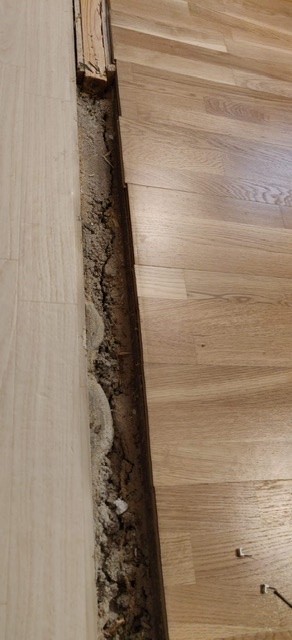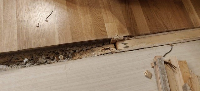 Då har vi bånkat loss tre av fyra som var kvar i mitten, mätte före och efter mellan golv och tak, 2385mm innan och sjönk 1-2mm bara.