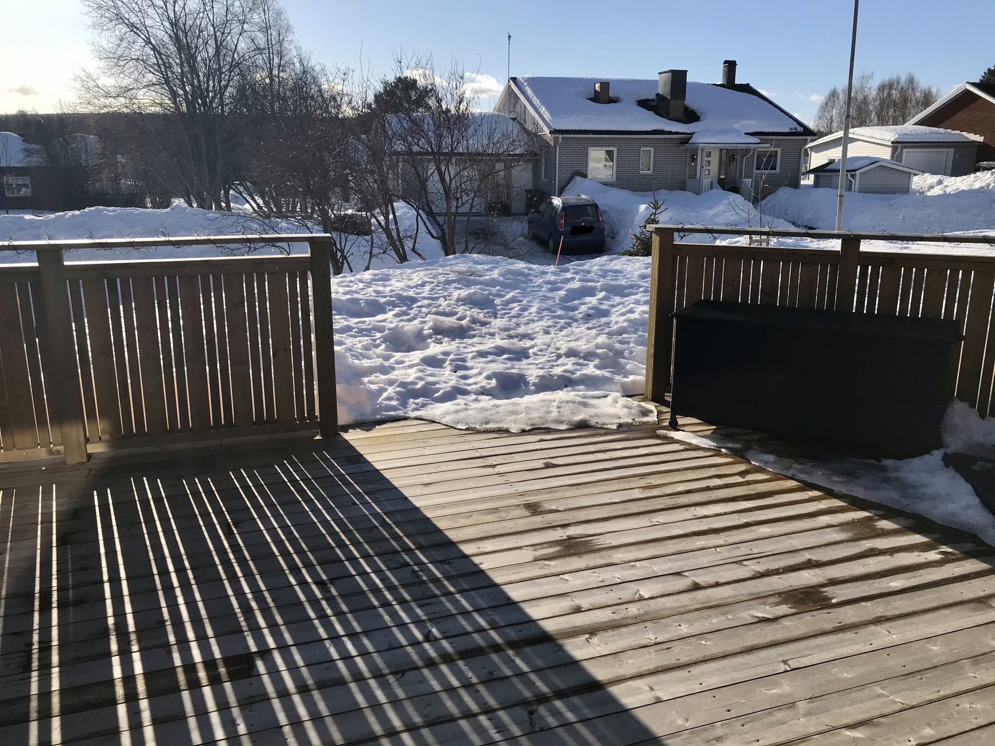 I somras byggde jag en stor härlig altan som står lite upphöjd. (Edit: syns ej på bilden för det är 1,5 meter snö framför