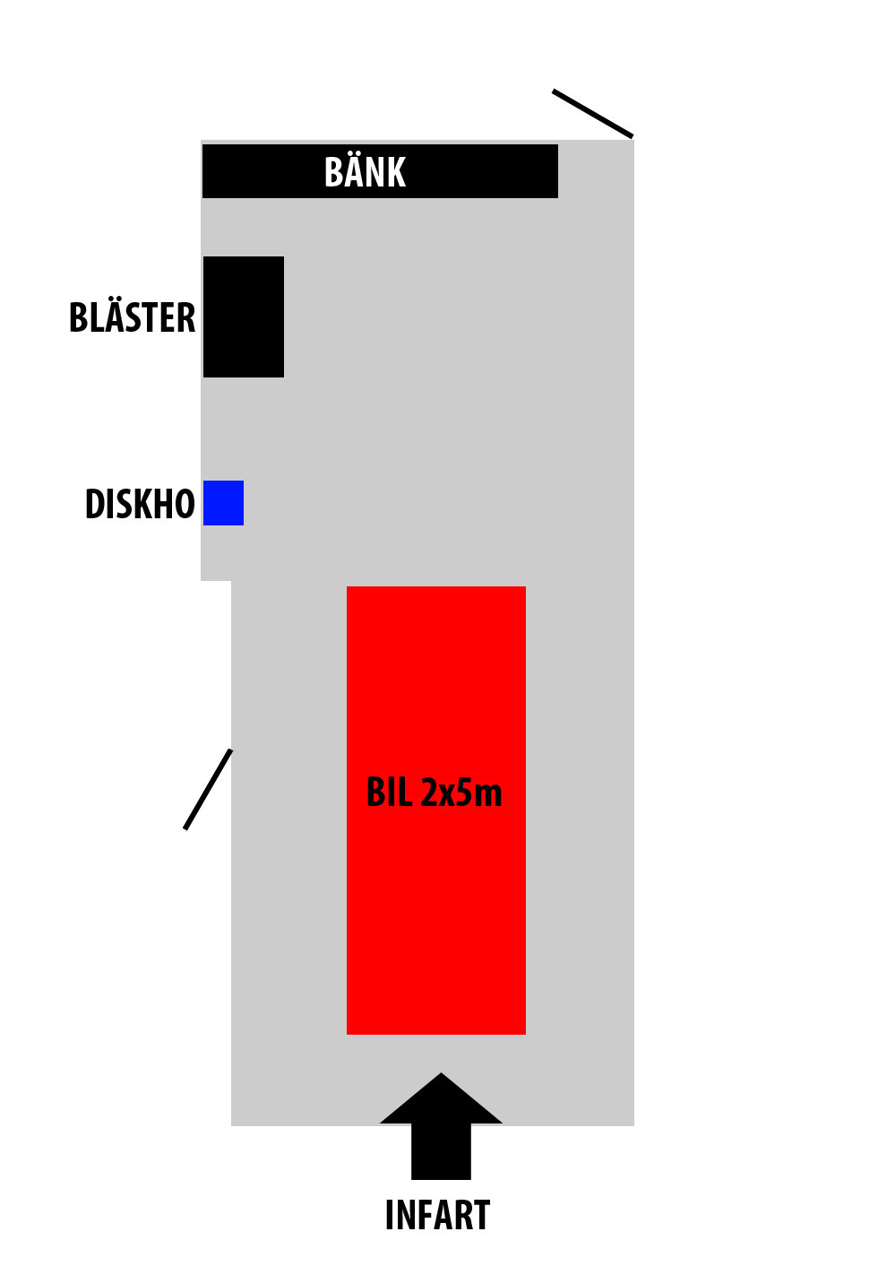 Som man ser är garaget ca 30 cm bredare ovanför bilen. Men tänker mig ha liften precis vid infart i garaget. Tänker jag fel? Eller skulle man satt liften längst in i garaget istället?