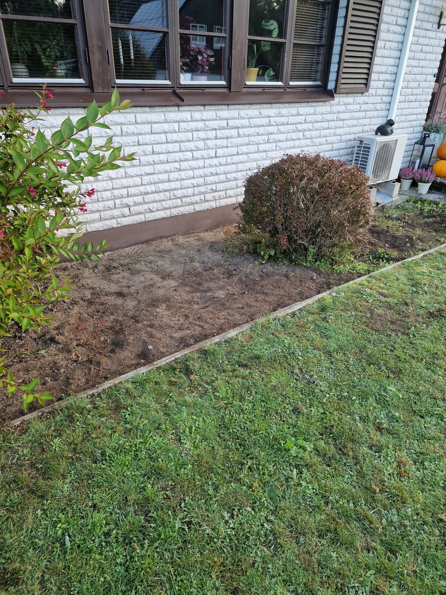 Ta jorden du gräver bort från husväggen. Du ska bara ha gräs så behövs inget speciellt. Resten av gräset ser ju ut att trivas.