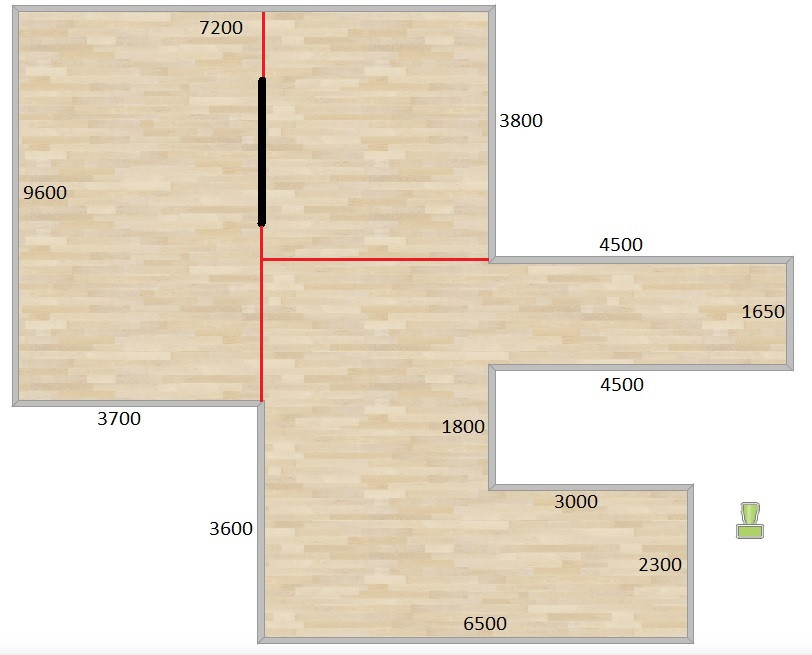 Ser att jag angett fel mått på vänstra väggen, den är 6000+3600.
