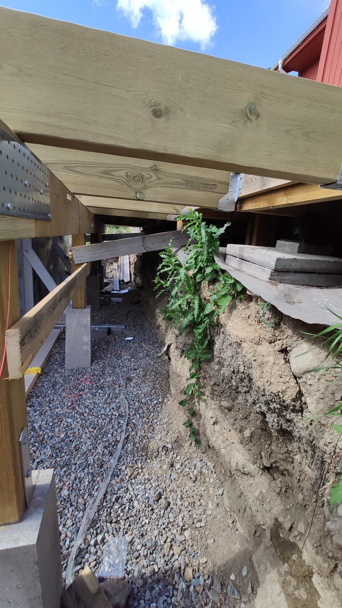 Har nyligen grävt ut för en ovanmarkspool precis bredvid vår veranda och undrar om det är någon här som kan det här med jordmassor och grunder.