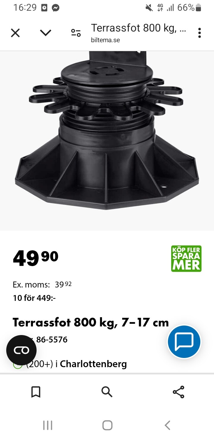 Men nu kommer mitt problem. Enligt Benders som säljer plintar tål de en belastning på 400 kg, och om man ställer dem på en betongplatta tål de 800 kg. Det räcker ju inte alls.