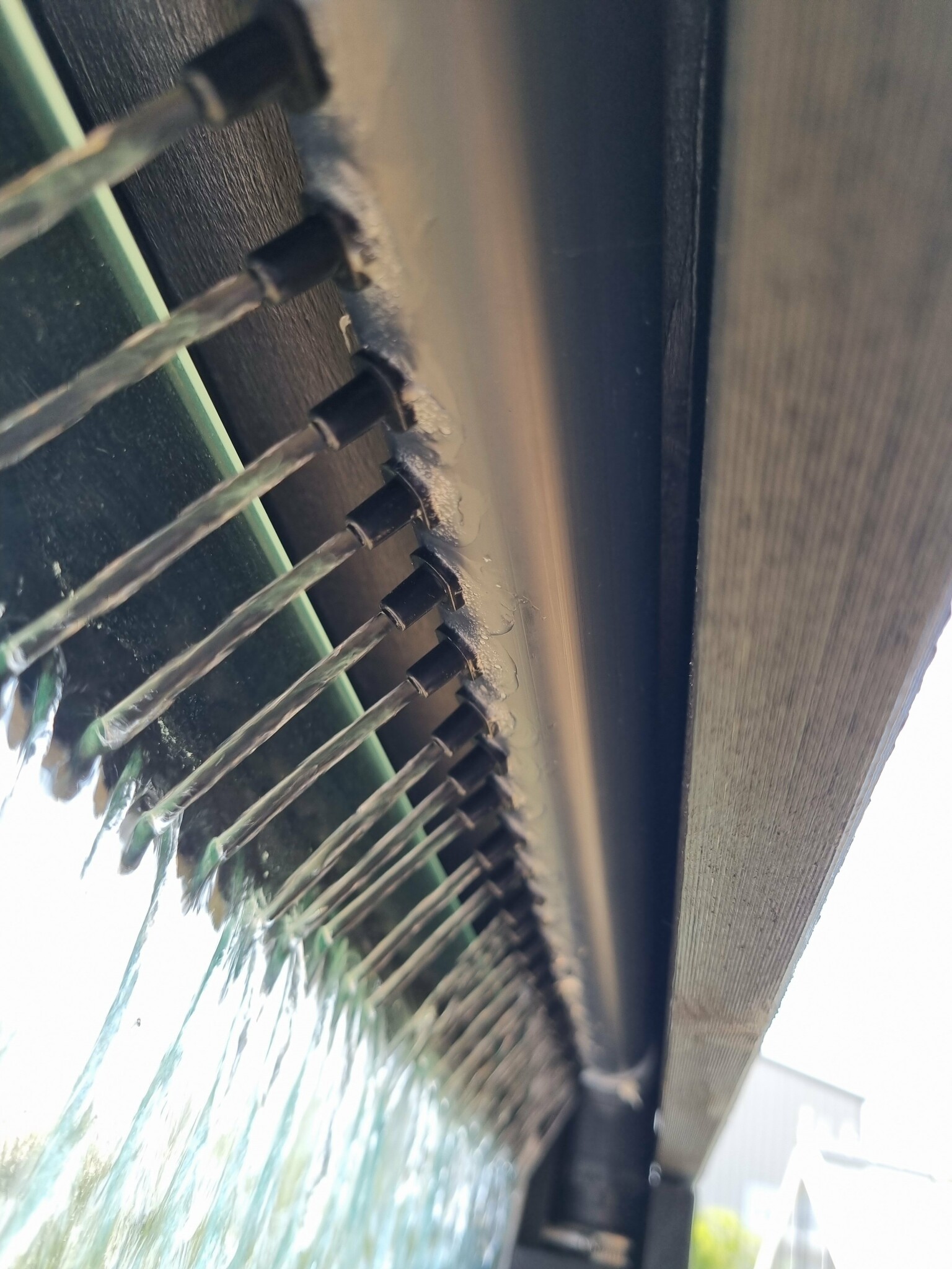 I övrigt är det en pump samt en slang med hål som sprutar vatten på glasskivans utsida.