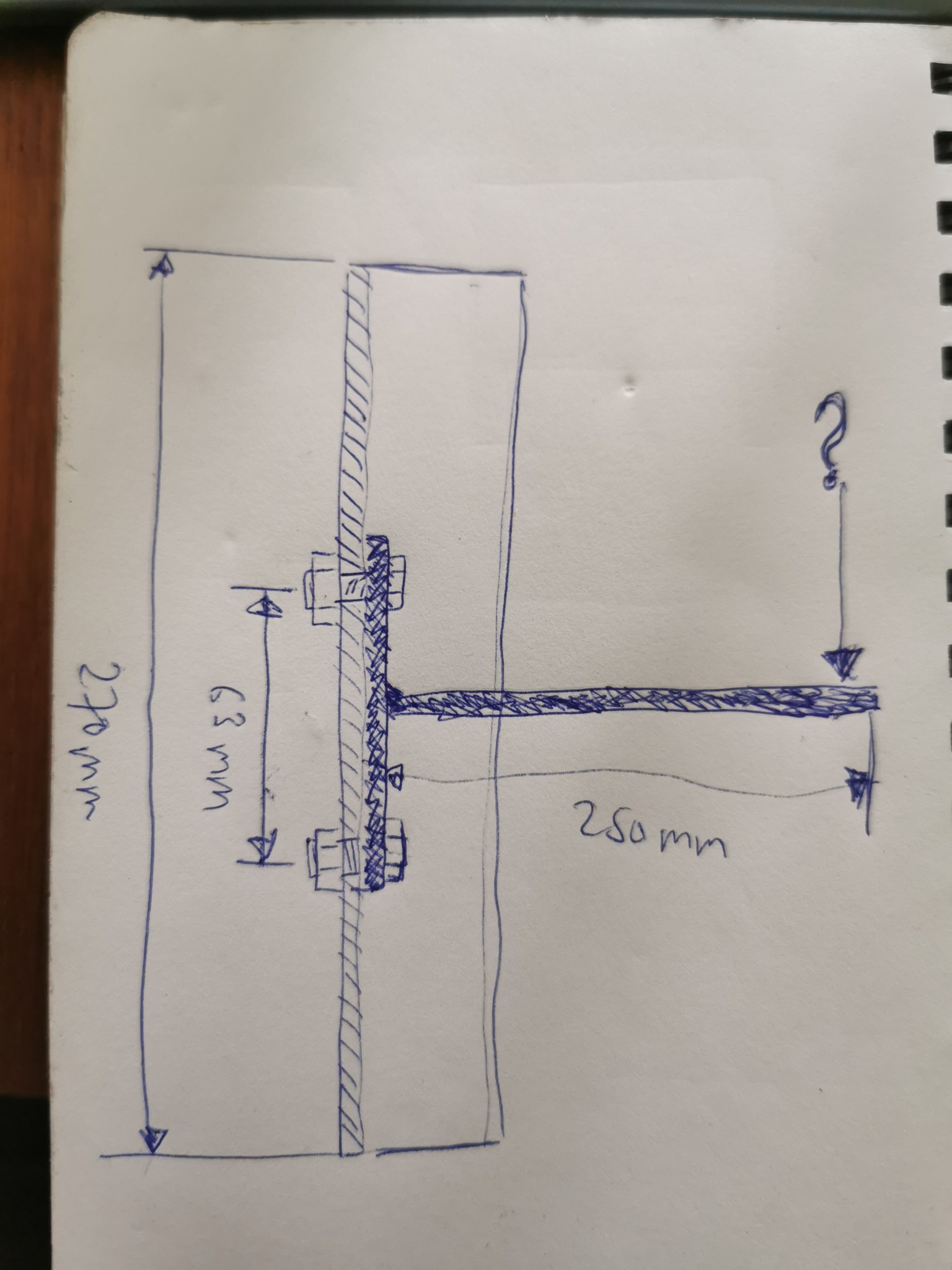 Vad består T-et av? Men i och med 250mm utstick skulle min gissning va att T-et ger sig före skruvförbandet. I länken nedan finner du sträck och brottgräns för skruv.