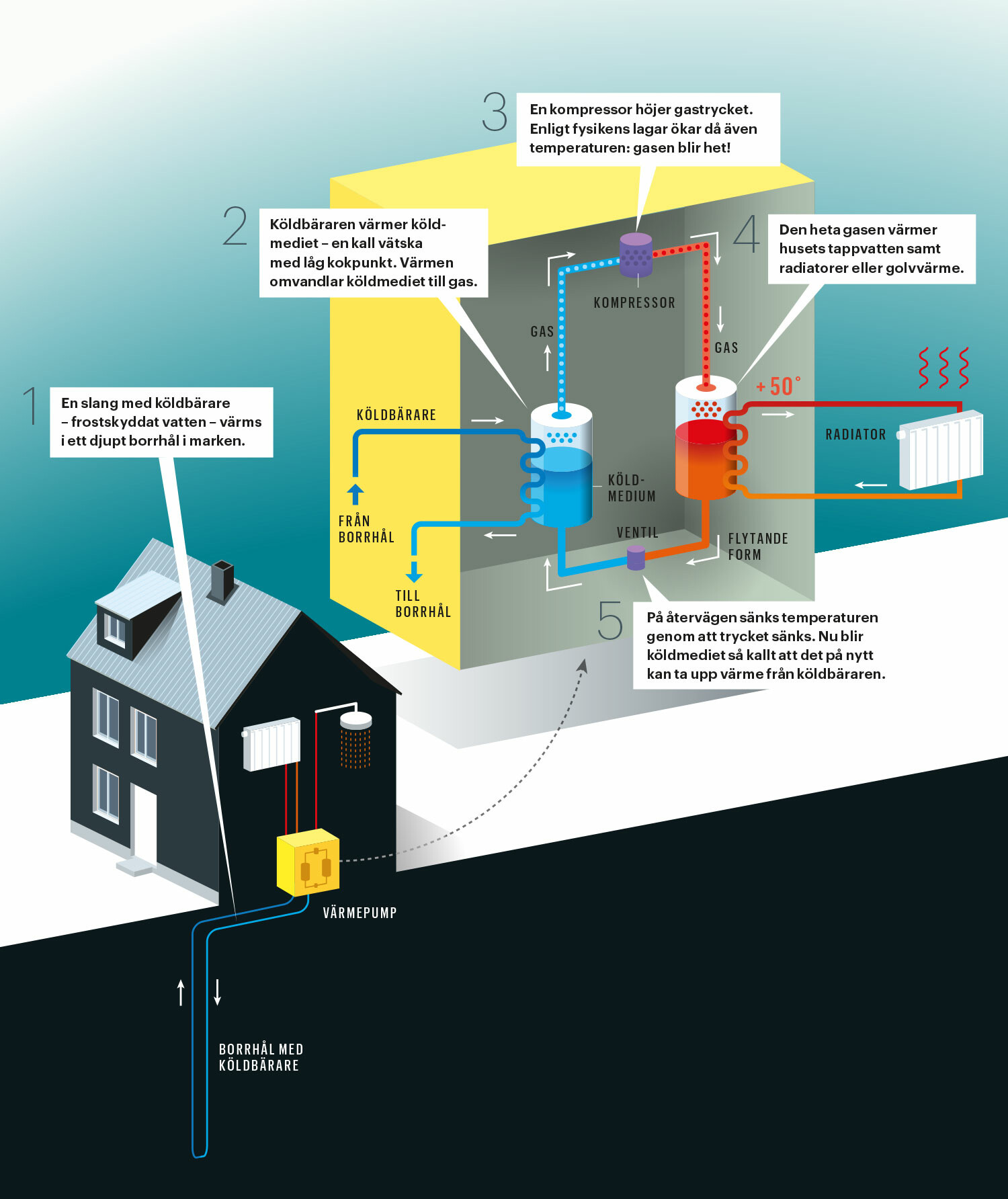 Värme överförs mellan dessa slingor via värmeväxlare.