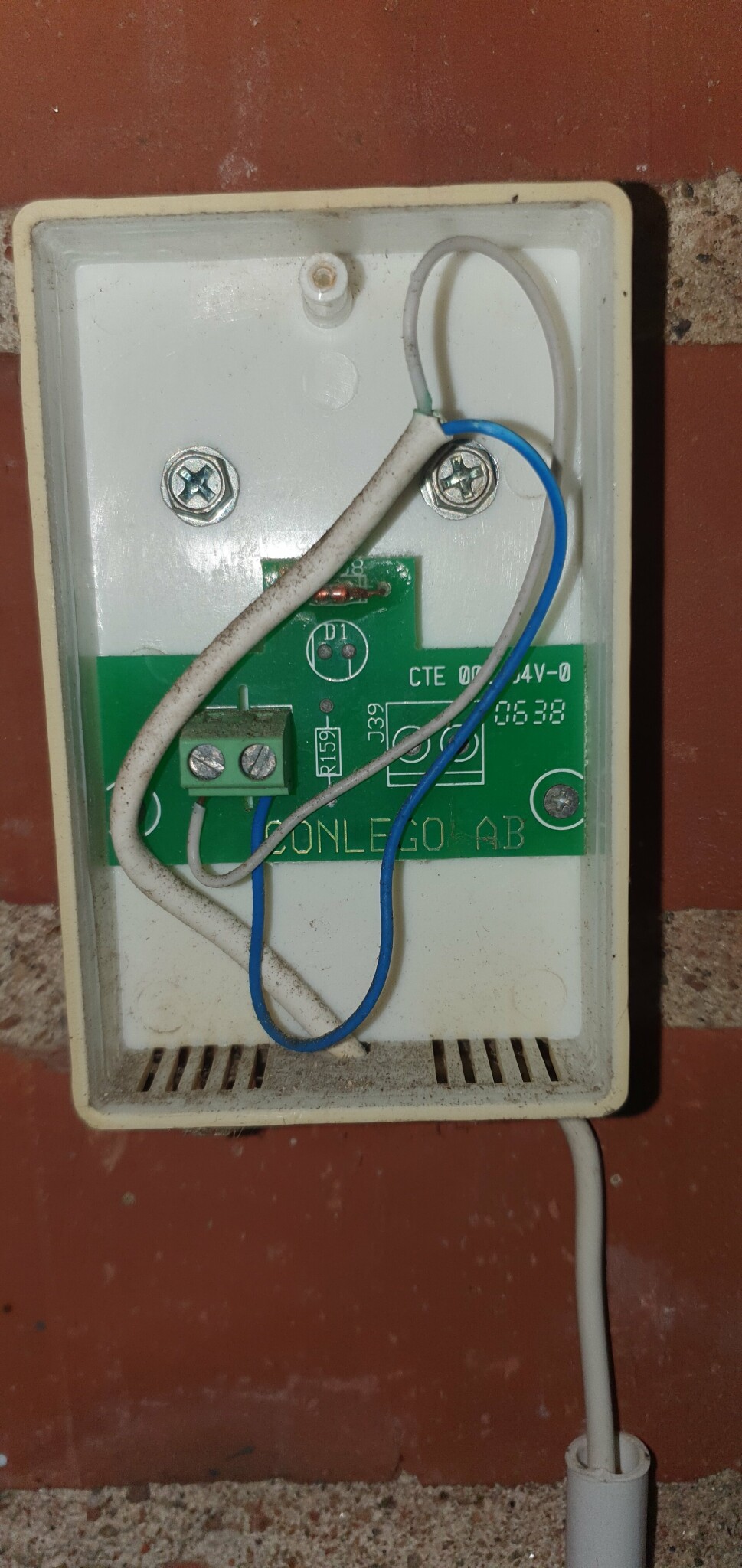 Har problem med en IVT Greenline Plus E bergvärmepump från 2007. Går inte igång när det är kallt ute. Kollade utetemperaturgivaren inne på displayen och visar 17.5 grader när det bara är ca 7 grader ute. Så nu öppnade jag utegivaren och ser att själva motståndet har ärgat enligt bild.