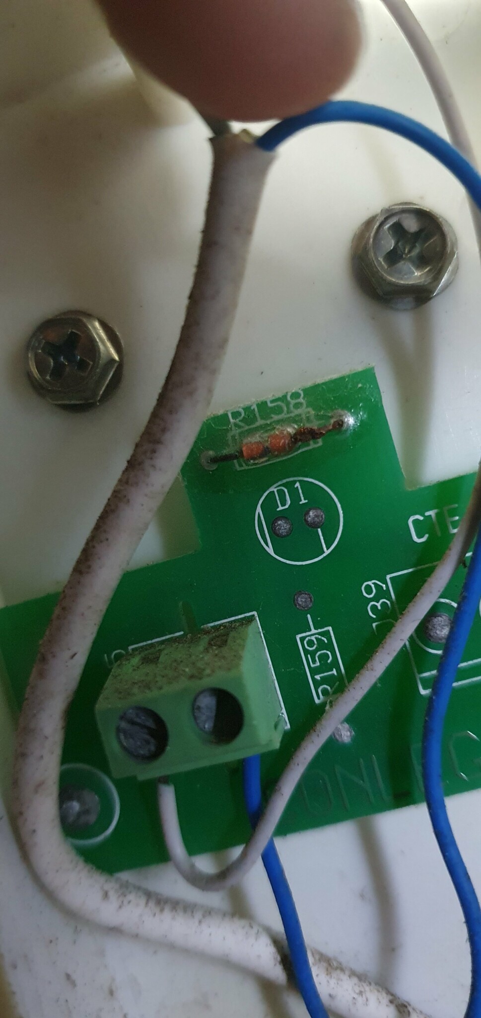 Misstänker då detta motstånd. Finns det att köpa hela kortet? Eller går det lödda dit ett nytt motstånd? Står R158 på motståndet. Vilket motstånd ska man köpa i så fall?