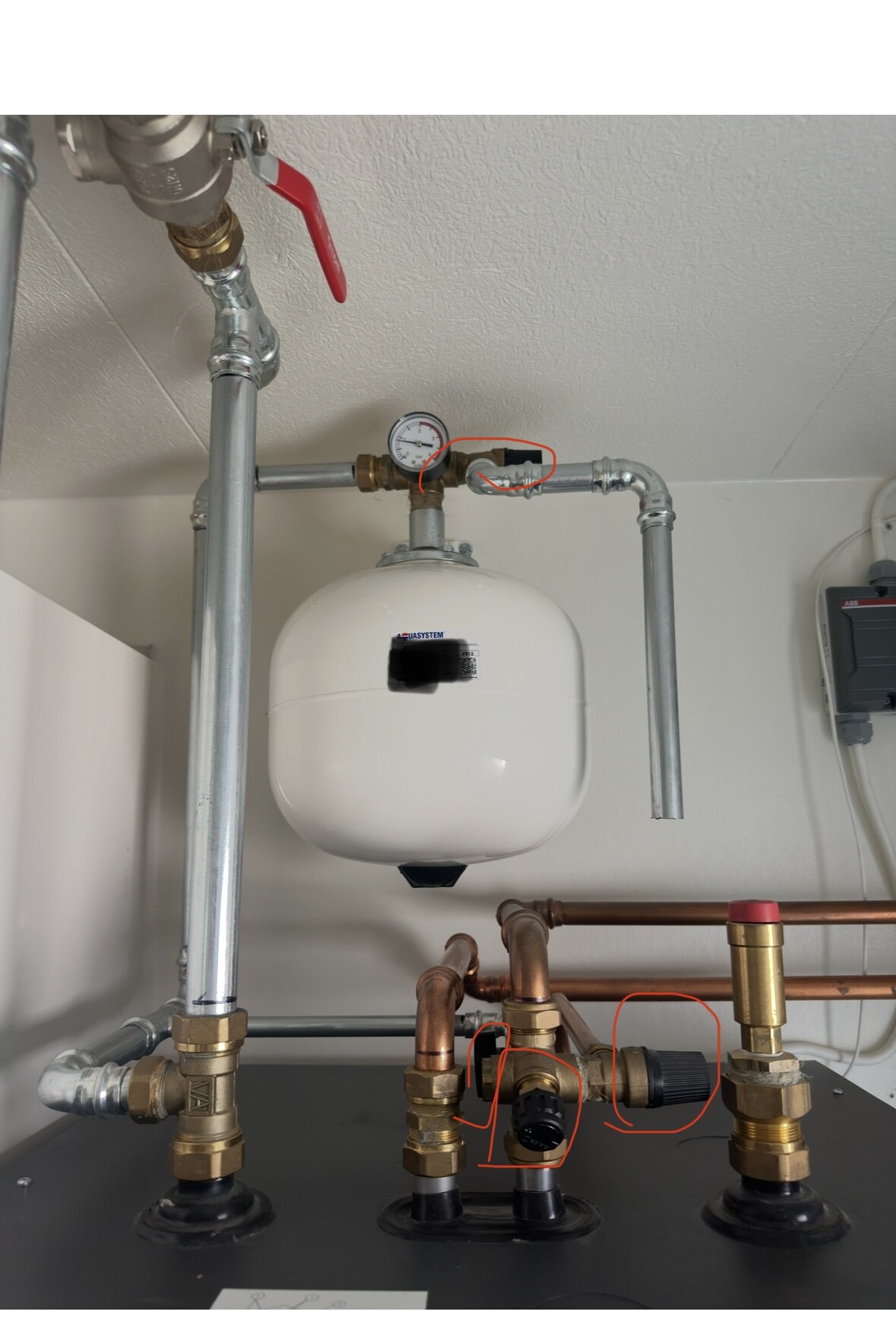 Ok jag kanske är trög men förstår fortfarande inte riktigt vilken av de inringade som justerar trycket? Som du säger är det nästa 1 bar vilket är helt ok, detta var mer för att veta i framtiden om det sjunker..J jonaserik skrev:Inringat. Den som är närmast, är för att stänga av kallvatten till varmvattenberadaren, den till höger är en säkerhetsventil för varmvatten, bakom är en ventil och ett rör som går till vänster bakom, till ett rör